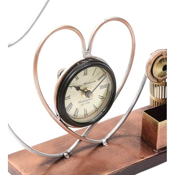 Furnshine – Cody Stethoscope Desk Organizer Clock – Multicolor Metal Heart Showpiece with Pen Holder & Wooden Base for Doctors