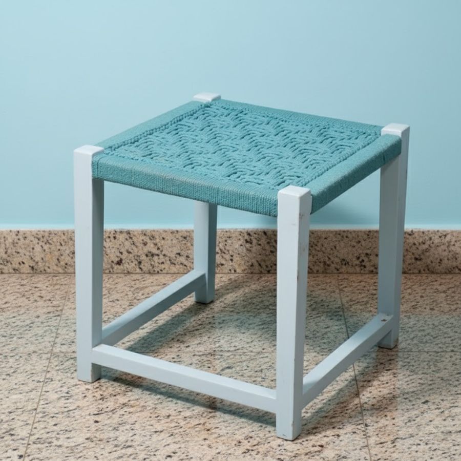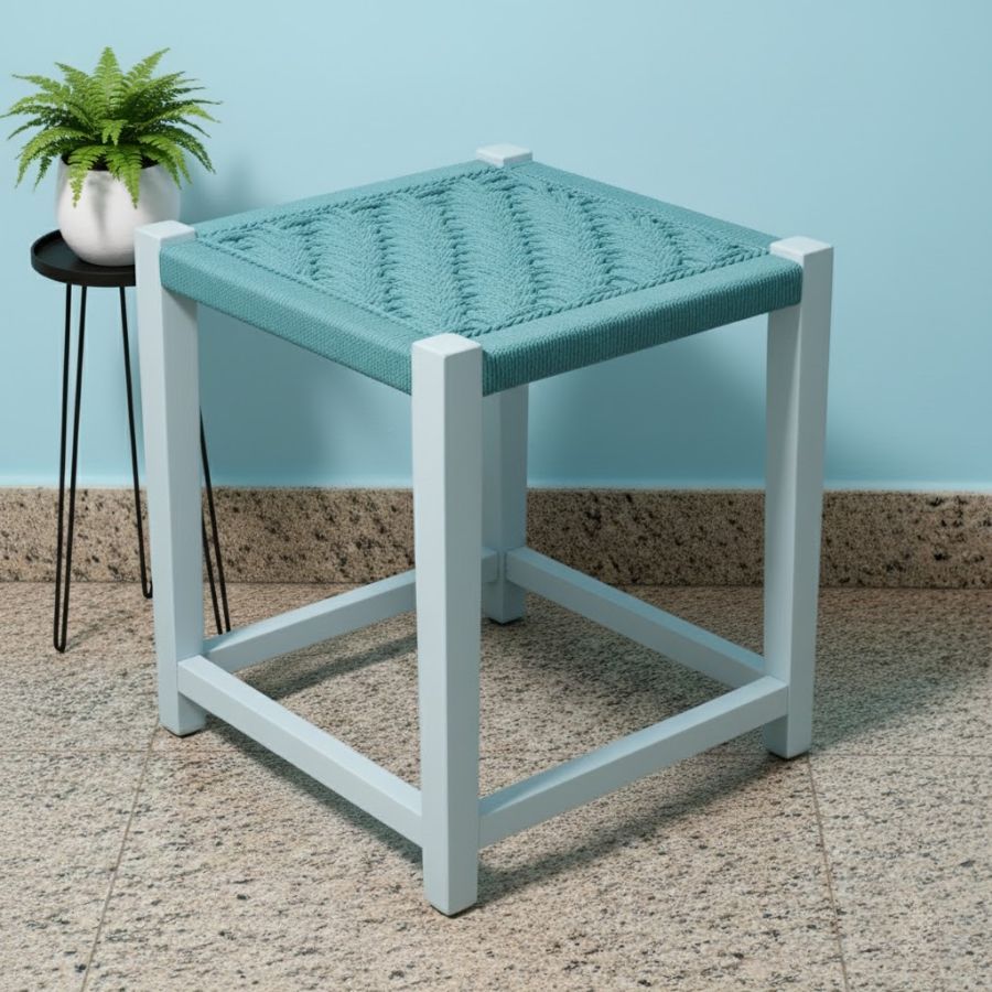 Furnshine – Dimity Teal Woven Stool with White Solid Wood Legs