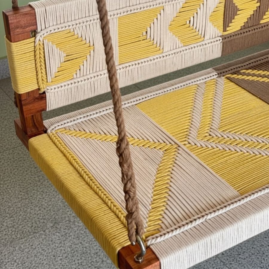 Furnshine – Dimity Woven Swing with Backrest – Yellow, Beige & White