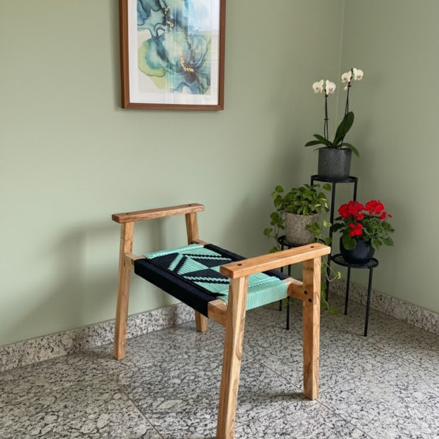 Furnshine – Dudley Solid Wood Hand Rest Woven Stool (Black & Teal)