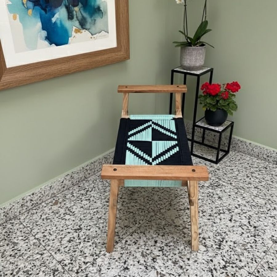 The Dudley Solid Wood Hand Rest Woven Stool (Black & Teal) is a striking handmade accent designed for both beauty and utility. Featuring a bold cotton cord weave atop a solid, chemical-treated wood frame, it brings a sculptural flair to entryways, living rooms, or even outdoor spaces. Compact yet robust, this contemporary bench complements bedrooms, balconies, and offices with its unique color palette and modern craftsmanship. Lightweight and easy to move, it offers versatile seating or display while ensuring comfort and durability. Each bench is meticulously woven for a lasting, sophisticated touch in modern interiors.