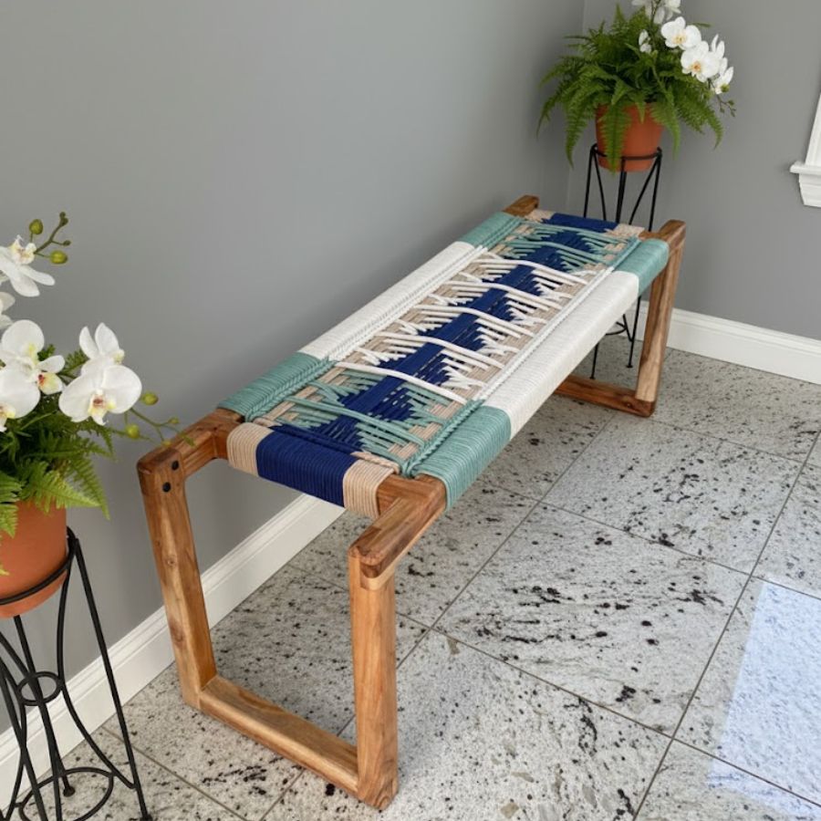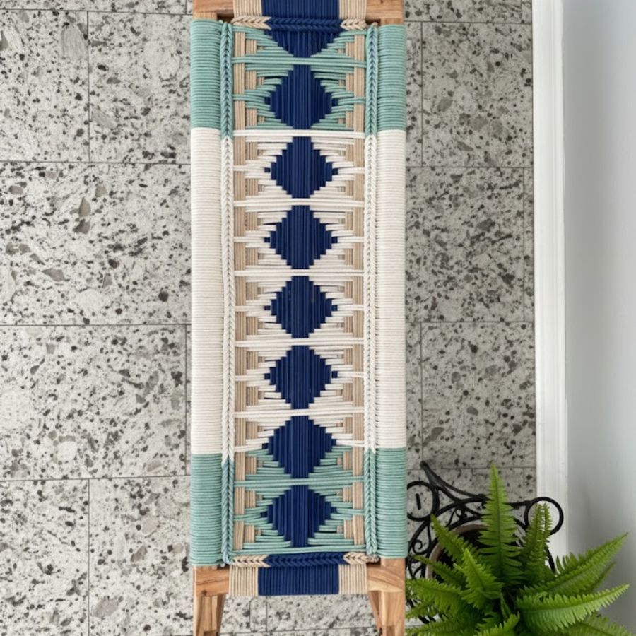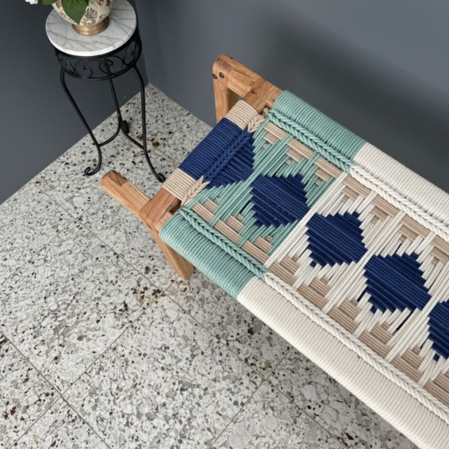 Furnshine – Eldred Boho Modern Woven Bench (Beige, Blue, White & Bottle Green)