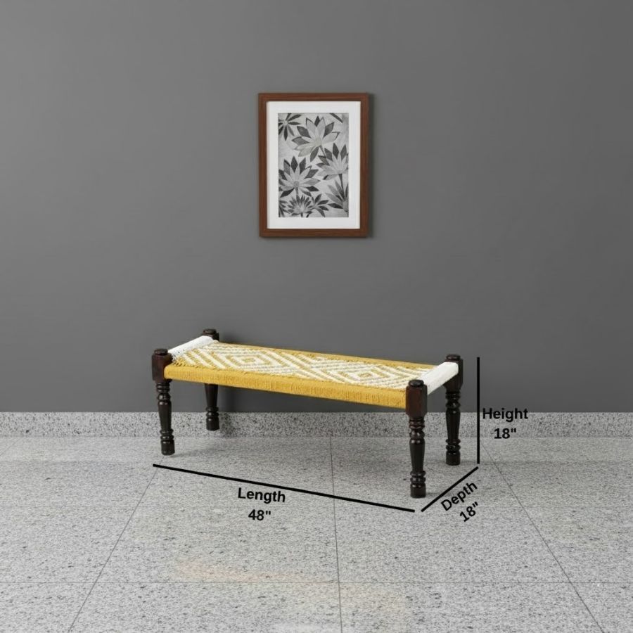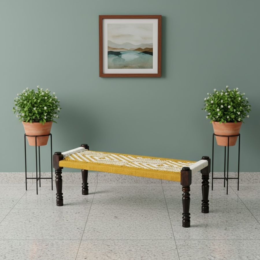Furnshine – Genesis Handwoven Sheesham Wood Bench (Yellow & White)