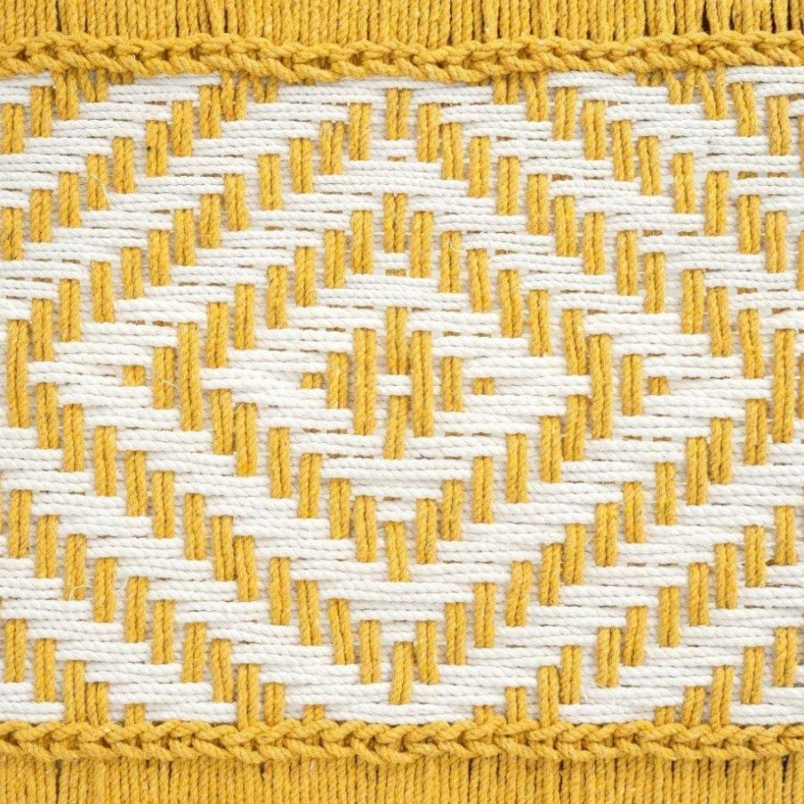 Handwoven seat in vibrant yellow and white