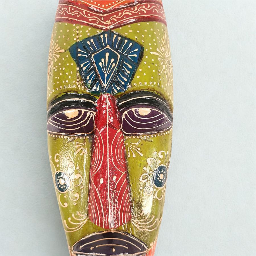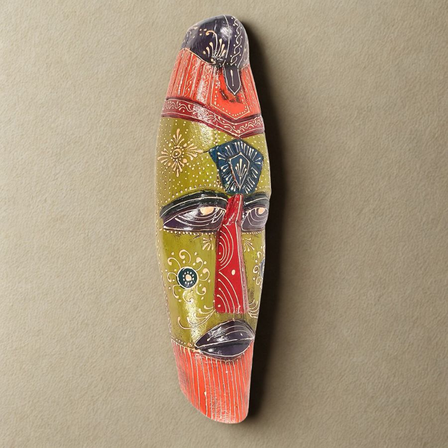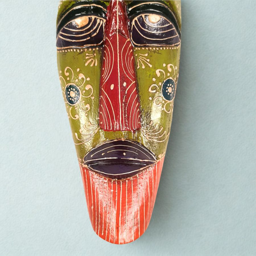 Furnshine – Green Maroon African Tribal Wall Mask Hanging – Nazar Battu Wooden Decor for Home Entrance & Living Room – 18 Inch Single Pack
