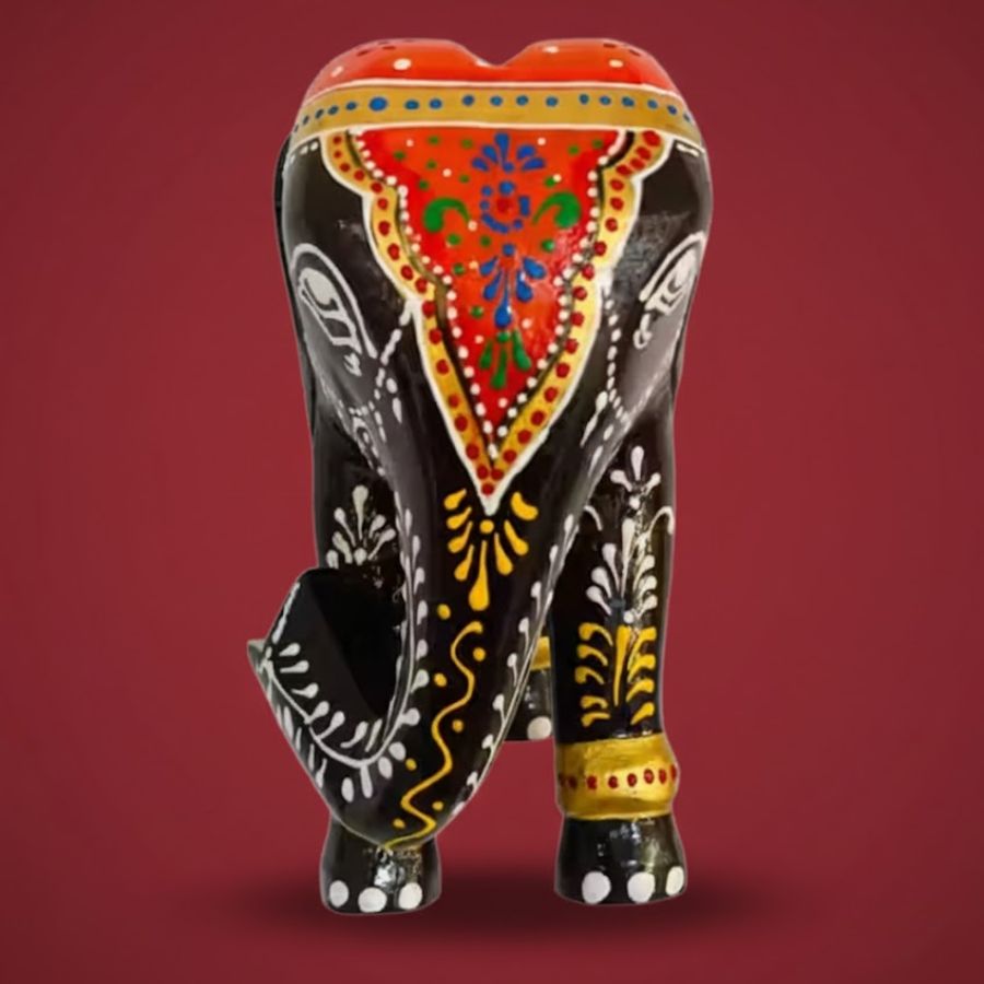 Furnshine – Hand Painted Black Wooden Elephant Figurine | 7x4x3.5 Inch Jodhpur Rajasthani Decor for Table, Pooja Room, Diwali Gifts – Indian Handicraft