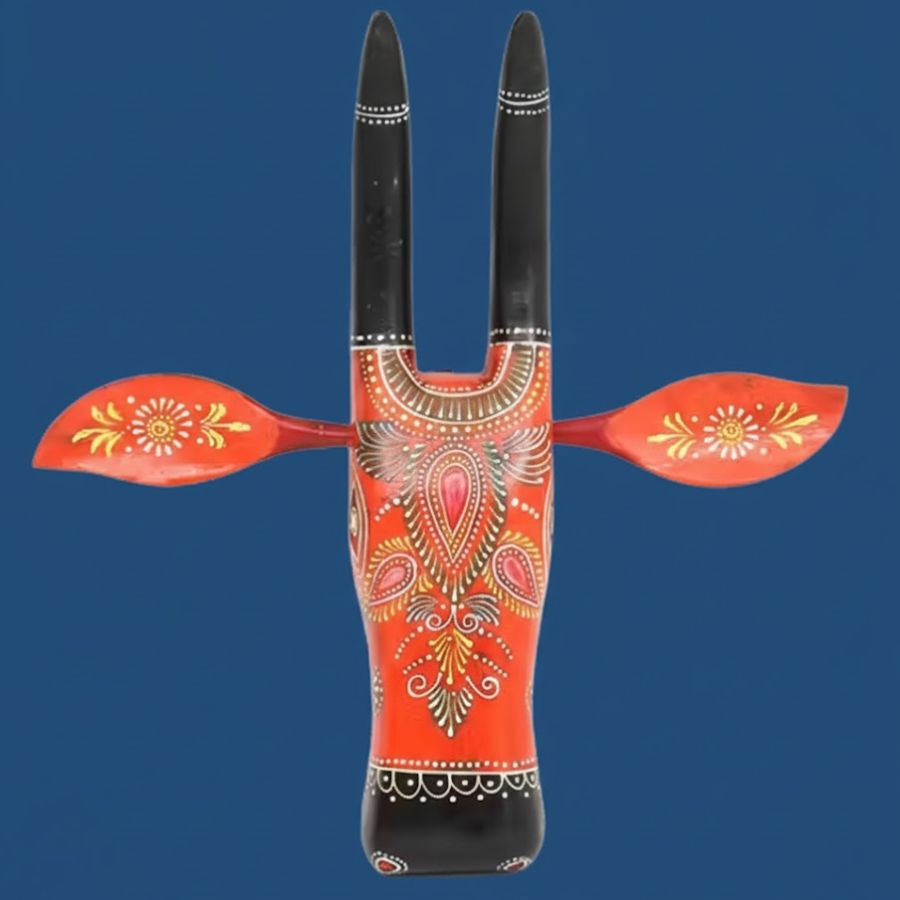 Handcrafted in wood/MDF with gold base and red highlights, inspired by Rajasthani art.