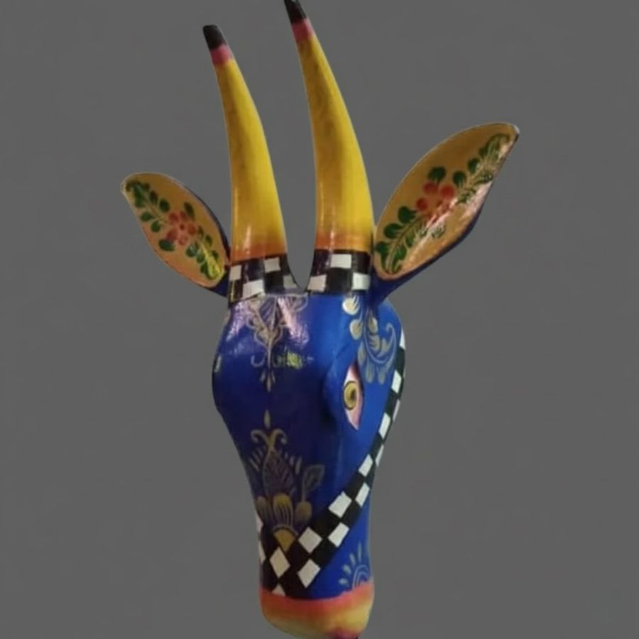 Discover the enchanting allure of our Hand-Painted Wooden Cow Face, a masterpiece from Furn Shine artisans. Crafted from premium mango wood and adorned with intricate multicolor motifs in blue, yellow, gold, and floral patterns, this 13 x 3.5 x 14-inch wall decor symbolizes prosperity and purity in Indian tradition. The striking blue base contrasts beautifully with gilded horns, checkered accents, and delicate ear embellishments, making it a bold statement piece for living rooms or pooja spaces. No assembly required—just hang and infuse your home with rustic elegance and spiritual positivity. Ideal for festive gifting or bohemian interiors, this durable, handcrafted treasure celebrates Rajasthan’s tribal craftsmanship.