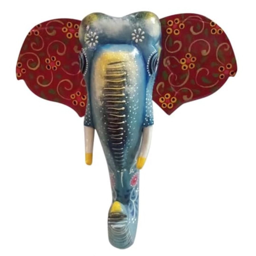 Enhance your interiors with this captivating handcrafted wooden elephant face wall hanging from Furn Shine, meticulously carved from premium mango wood. The bold blue elephant features intricate red vine motifs on expansive ears, golden detailing on trunk and tusks, and lively hand-painted expressions, showcasing Rajasthan’s vibrant handicraft tradition. As a Vastu symbol of good fortune, protection, and positive energy, it adorns living rooms, entrances, or pooja spaces with cultural flair and elegance. Measuring 15x3x15 inches, this lightweight piece includes a sturdy hook for effortless mounting and fade-resistant finishes for lasting appeal. Ideal for housewarmings, festivals, or gifting, it merges eco-friendly craftsmanship with timeless sophistication.