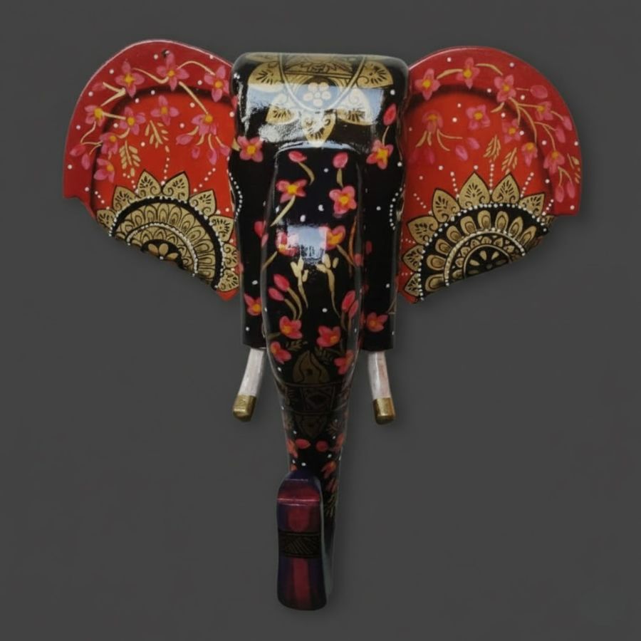 Transform your space with this stunning handcrafted wooden elephant face wall hanging from Furn Shine, masterfully carved from premium mango wood. Vibrant red floral motifs, black base, and gold detailing adorn the expansive ears, trunk, and tusks, capturing Rajasthan’s timeless handicraft legacy. As a Vastu-compliant emblem of wisdom, good fortune, and protection, it graces entrances, pooja rooms, or living walls with cultural depth and elegance. Lightweight yet durable, this 15x3x15-inch masterpiece requires no assembly—simply hang to infuse positive energy. Ideal for gifting on housewarmings or festivals, its eco-friendly finish ensures lasting vibrancy and charm.