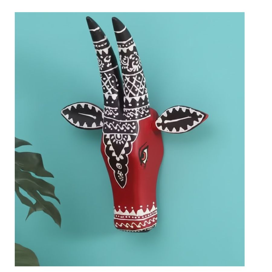 Furnshine – Handcrafted Red Wooden Painted Cow Face Wall Hanging 10 Inch – Rajasthani Tribal Art Home Decor
