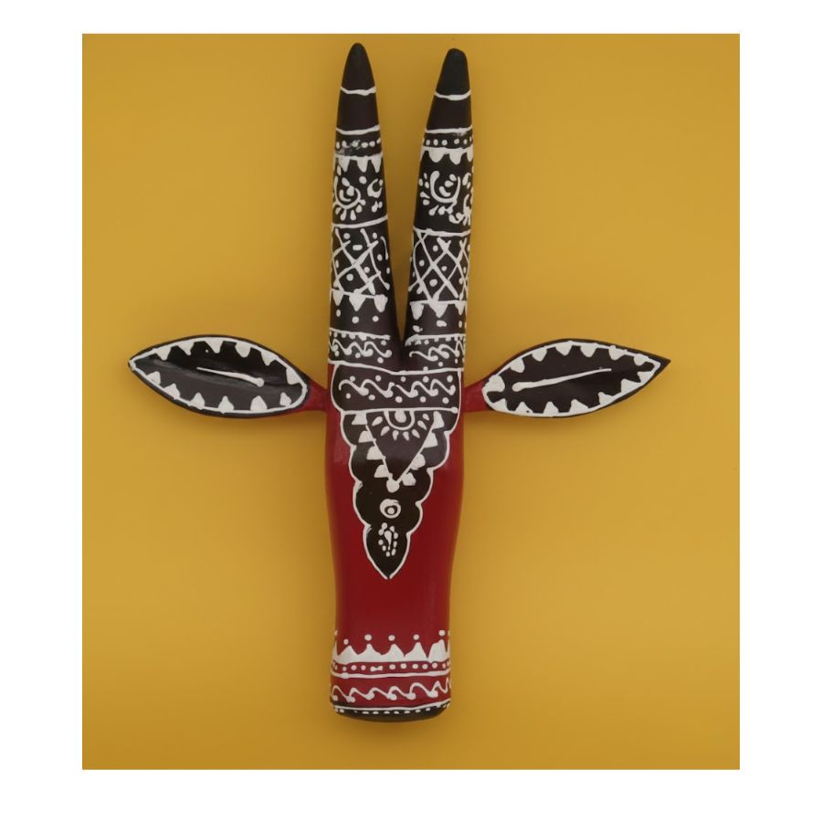- Rajasthani Tribal Design: Bold red cow face with black geometric patterns and curved horns.