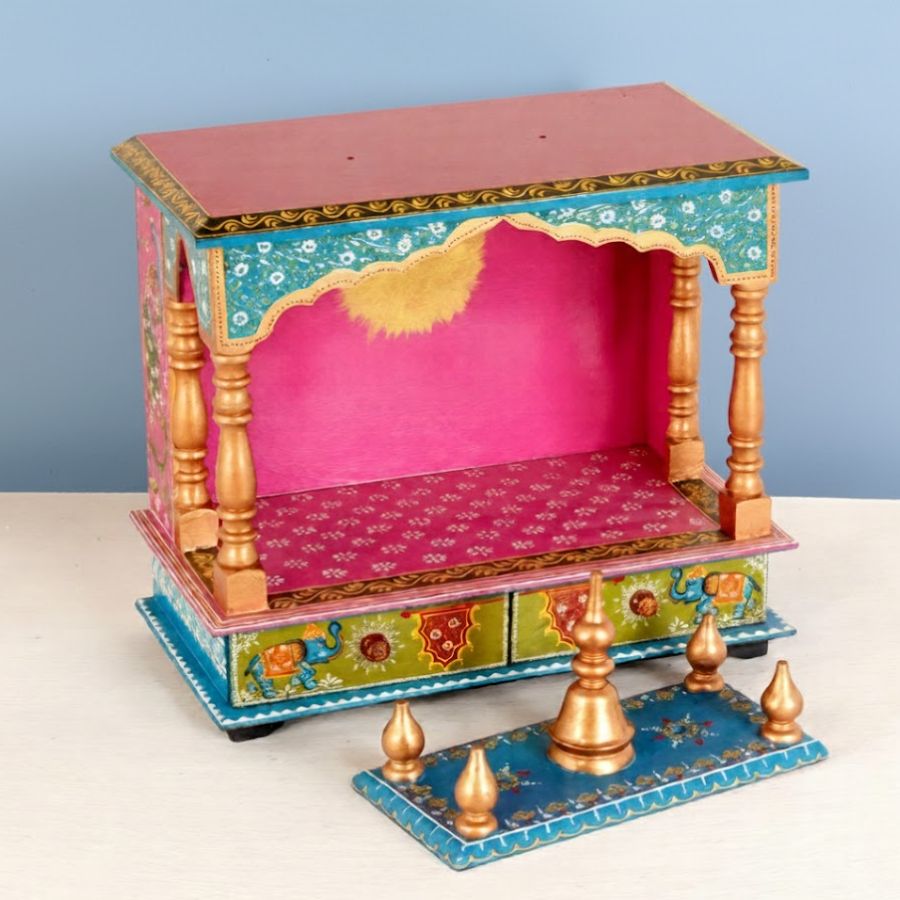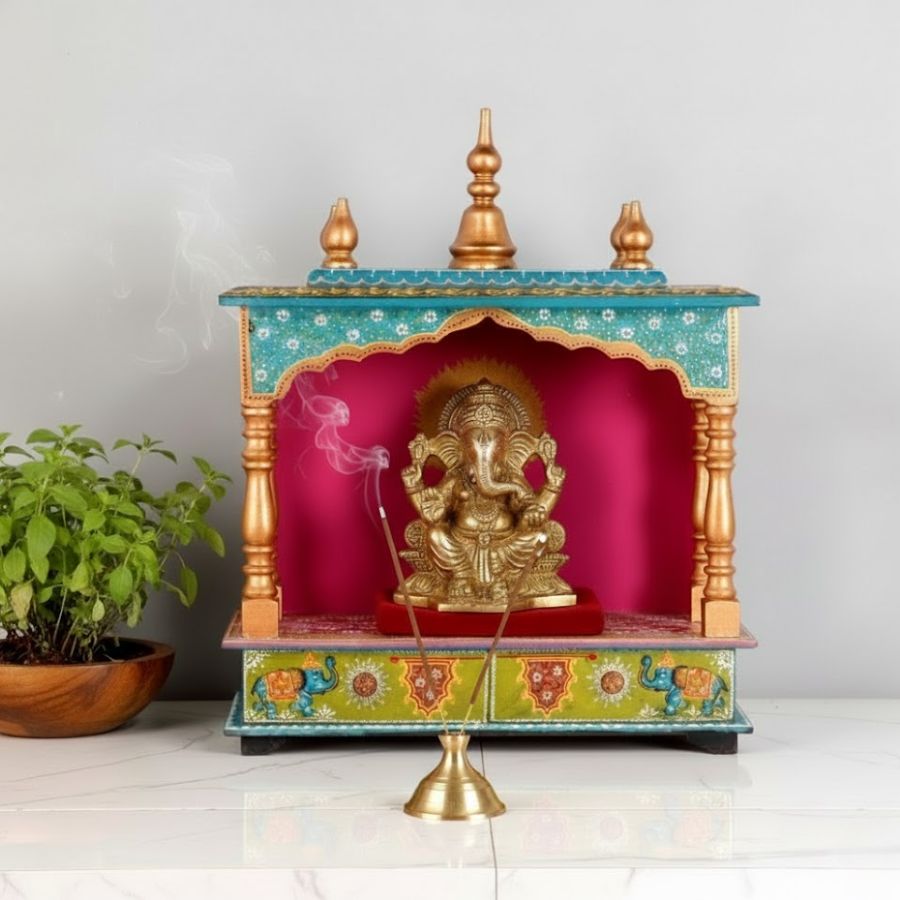 - Built-in storage drawer for keeping pooja accessories organized.