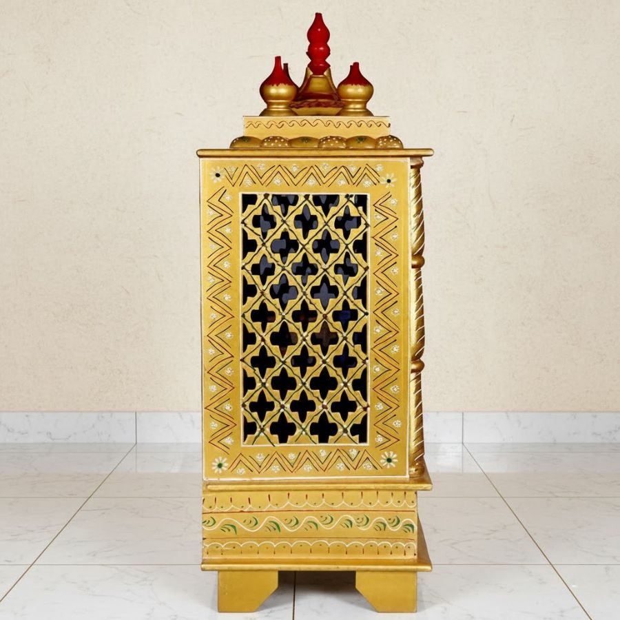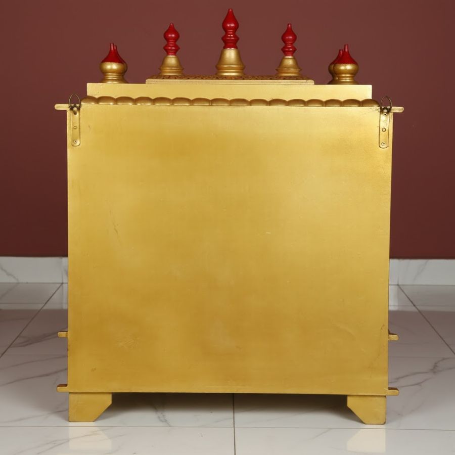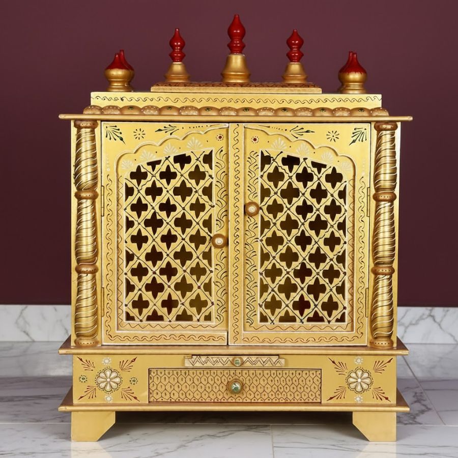 Furnshine – Premium MDF Wooden Home Temple Mandir | Hand-Painted Gold Finish with Storage