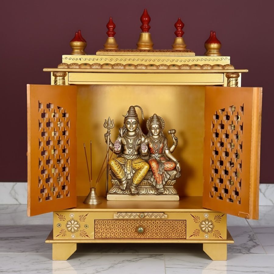 Compact, pre-assembled pooja ghar ideal for flats, study tables and living room corners.
