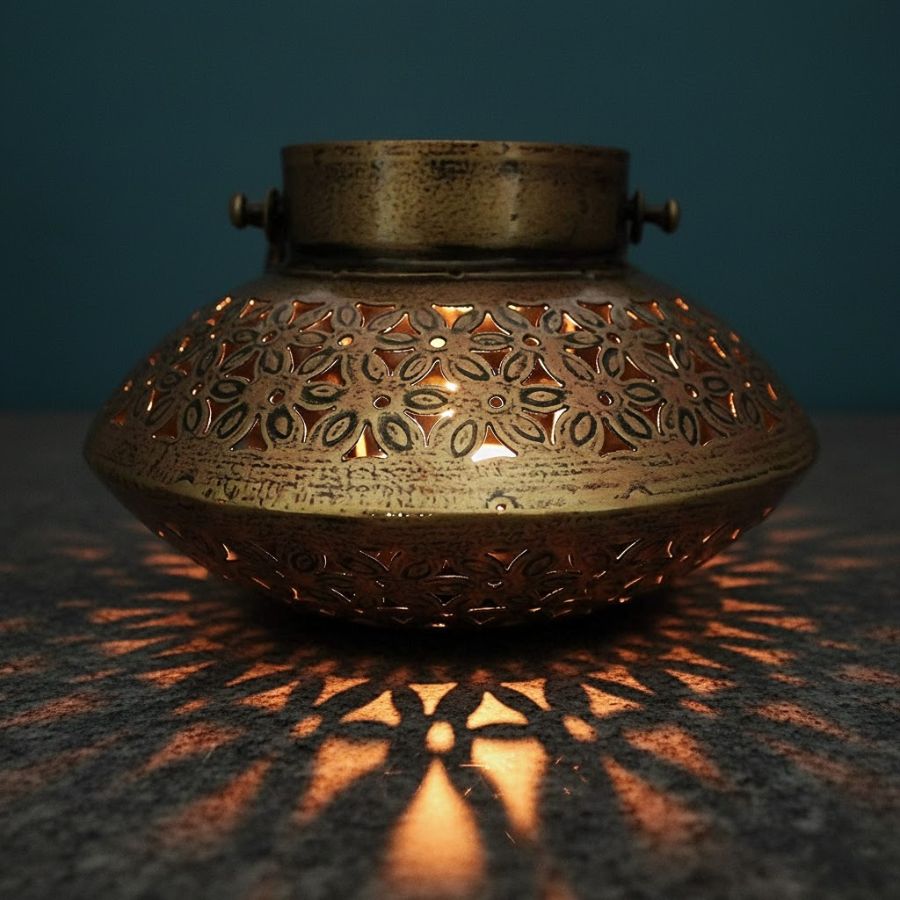 Furnshine – Harpo Handcrafted Brass Filigree Candle Holder – Ornate Metal Tealight Lamp for Meditation, Festival & Home Decor
