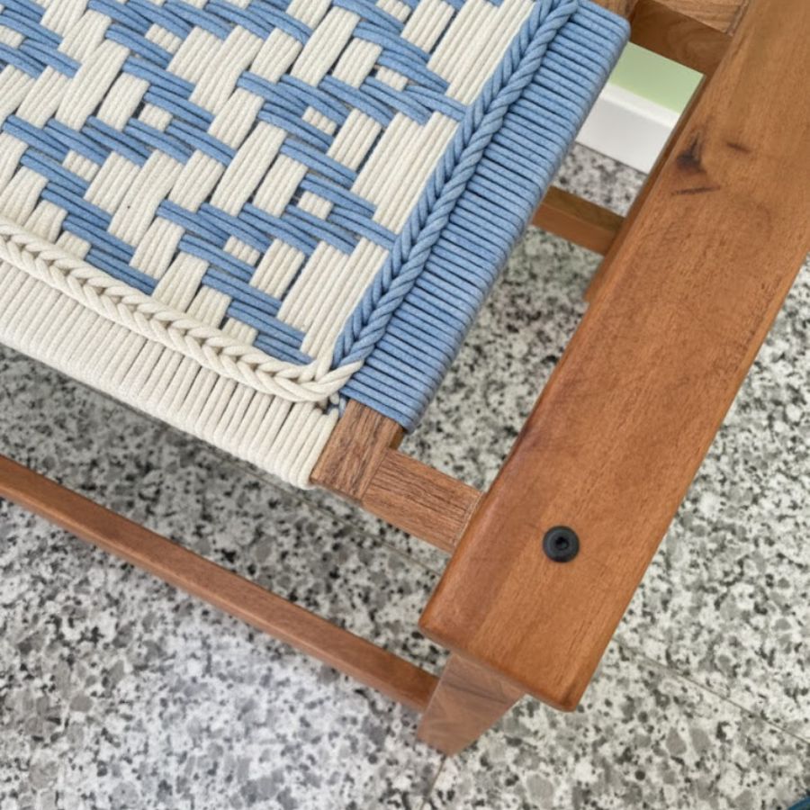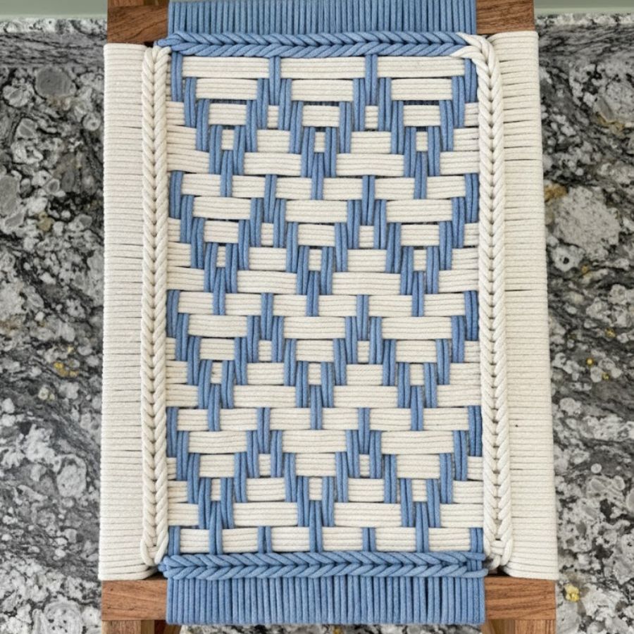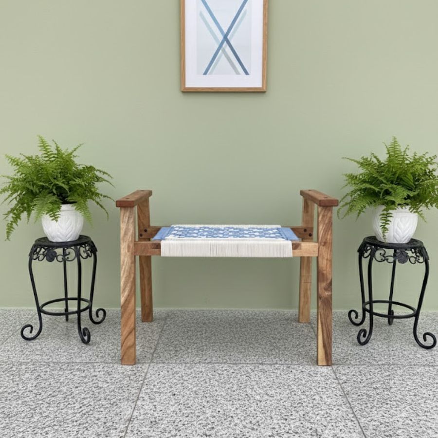 Furnshine – Hettie Solid Wood Hand Rest Woven Stool (White & Blue)