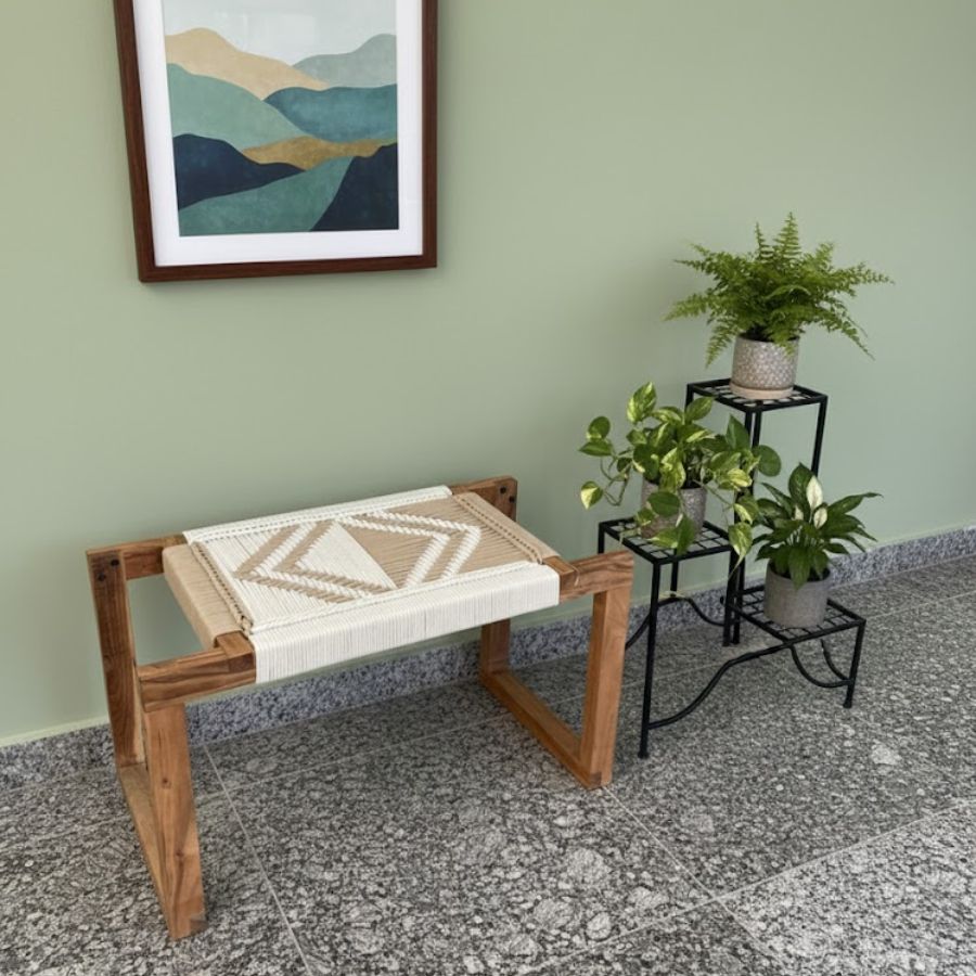 The Howell Solid Wood Woven Stool (Beige & White) is a handcrafted accent that enhances any room with its sculptural modern profile. Featuring solid high-density wood and a handwoven 4 mm cotton cord seat in neutral tones, this versatile bench adds functionality and visual appeal to bedrooms, living areas, or entryways. Its compact, lightweight form allows for easy placement in homes, offices, or gardens. Durable craftsmanship ensures longevity, while the elegant weave pattern brings textural charm and comfort. Ideal for contemporary decors, this stool promises years of dependable use.