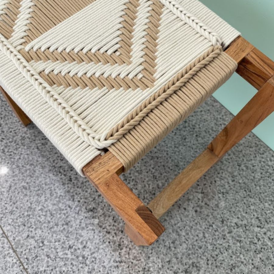Furnshine – Howell Solid Wood Woven Stool (Beige & White)
