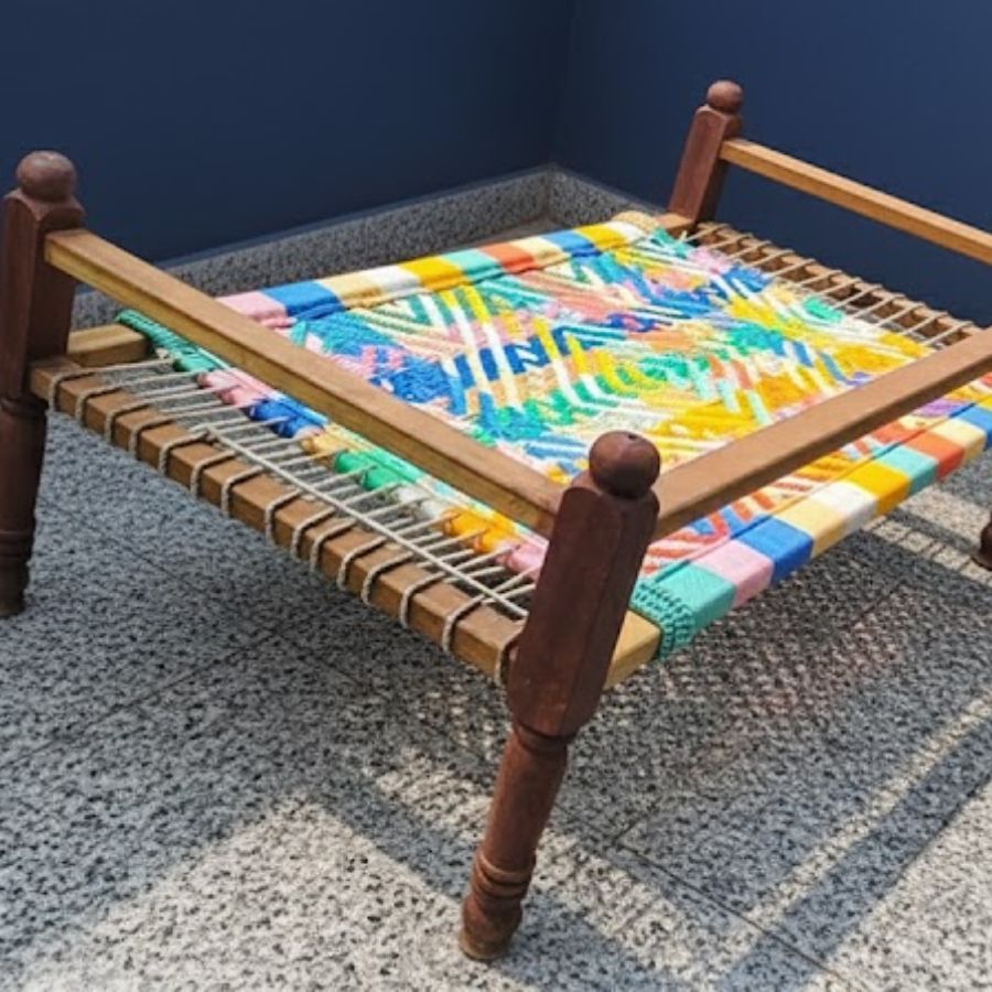 Furnshine – Kamden Solid Wood Rajasthani Silk Woven Charpai/Khatiya (Multicolor)