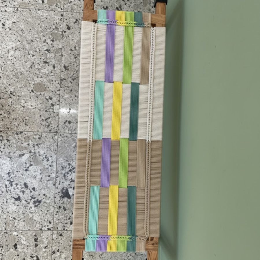 Handwoven seat in multi-color cotton cord