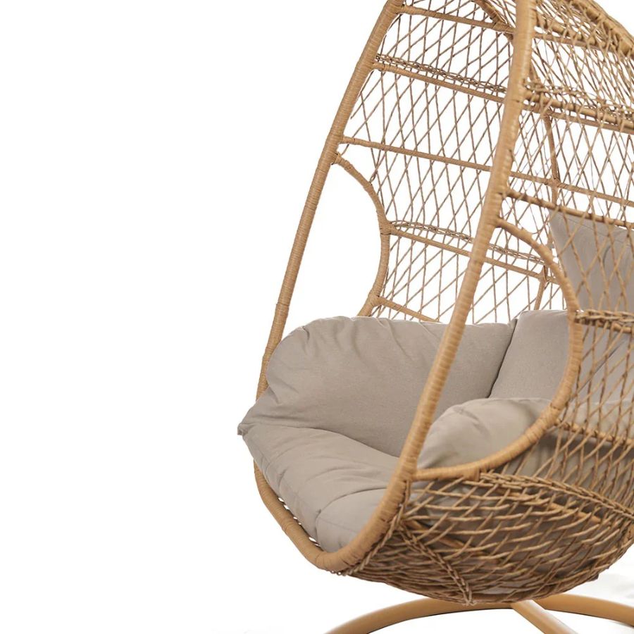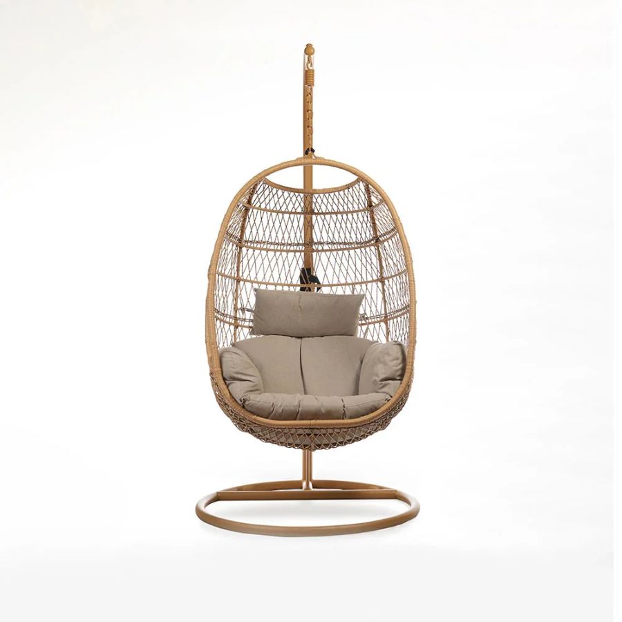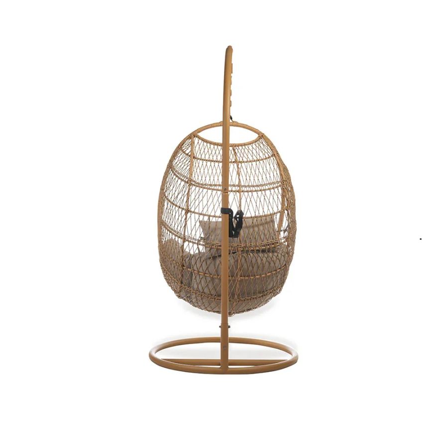 Indulge in serene comfort with the Langdon Synthetic Rattan Hanging Swing Chair from Furnshine. Built on a sturdy iron frame and hand-woven with premium synthetic rattan, this oval-shaped swing chair is both durable and inviting. The included plush mattress and pillow offer unrivaled relaxation, making it ideal for living rooms, porches, bedrooms, and hallways. Its modern, free-standing design suits indoor and outdoor spaces, blending style with versatility. Easy self-assembly and a sophisticated beige tone make this swing a timeless addition to any stylish home.