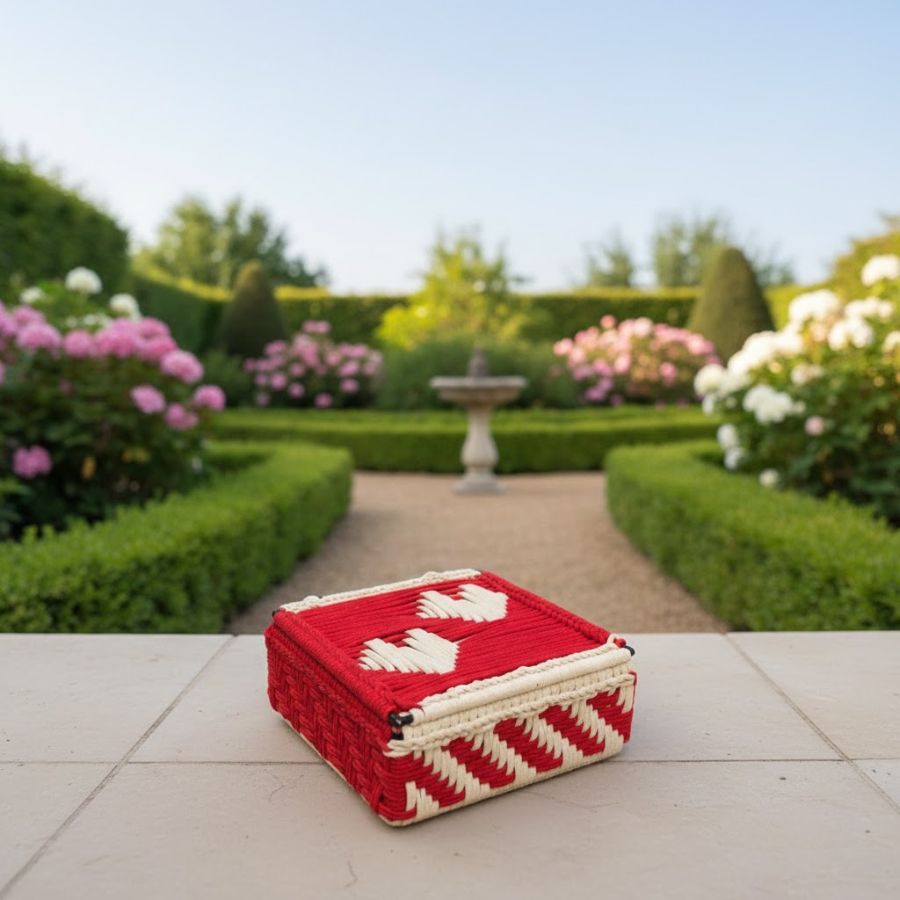 Introduce timeless craftsmanship to your home with this Louella Handwoven Red & Ivory (Off-White) Multipurpose Storage Box – Premium Gift Organizer in vibrant red and ivory (off-white) tones. Expertly crafted using durable woven cords, it combines traditional artistry with modern utility. Its sturdy structure and spacious interior make it ideal for organizing accessories, stationery, trinkets, or festive essentials, while the bold geometric pattern adds a striking accent to any room. Lightweight yet strong, this box is perfect for living rooms, bedrooms, outdoor setups, or gifting. Designed to elevate your décor, it brings both charm and functionality to everyday storage with its handcrafted elegance.