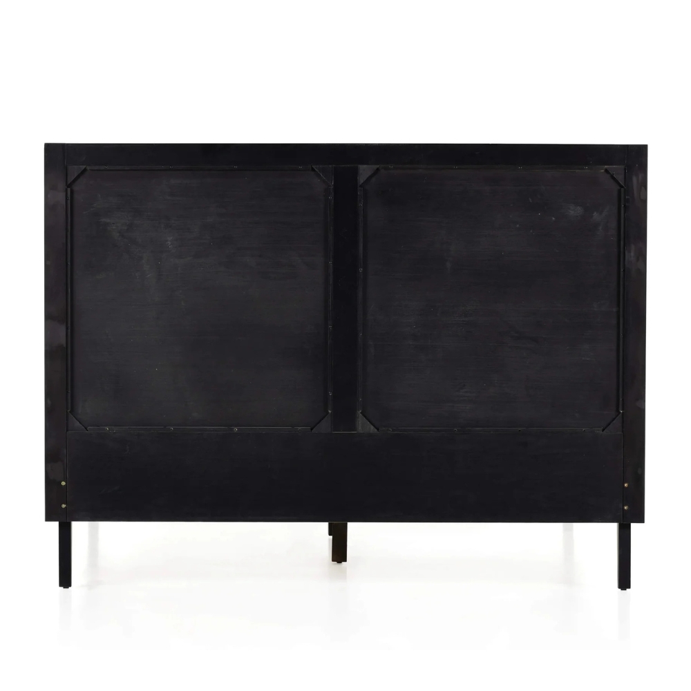 Furnshine – Manny Sheesham Wood & Rattan Black Queen Size Bed
