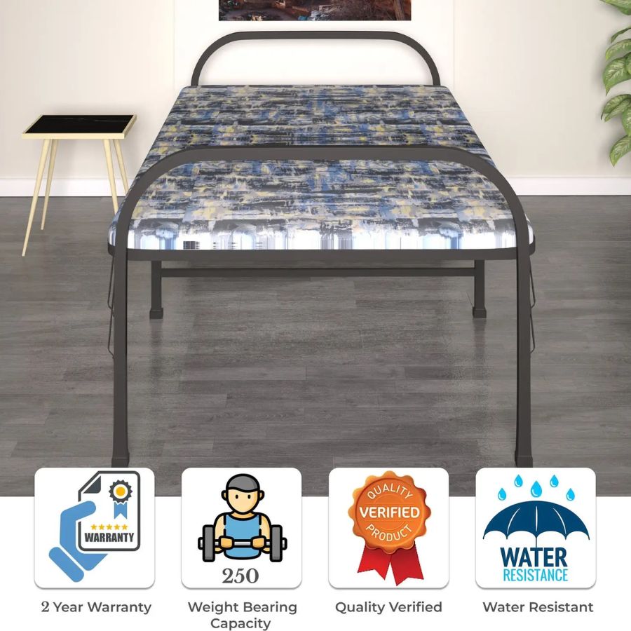 Furnshine – Multicolor Metal Folding Bed with Soft Mattress | Foldable Bed for Guest Room & Small Spaces