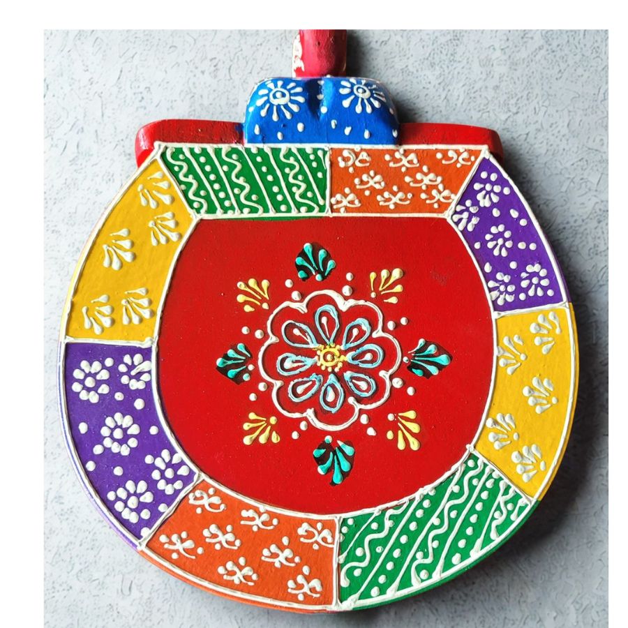 - Handcrafted metal wall hanging with vibrant hand-painted finish