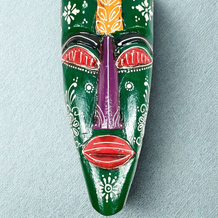 Furnshine – Nazar Battu Green Tribal Wooden Wall Mask | 18 Inch Handcrafted African Egyptian Face Hanging – Material Wood Home Entrance Door Living Room Balcony Decor