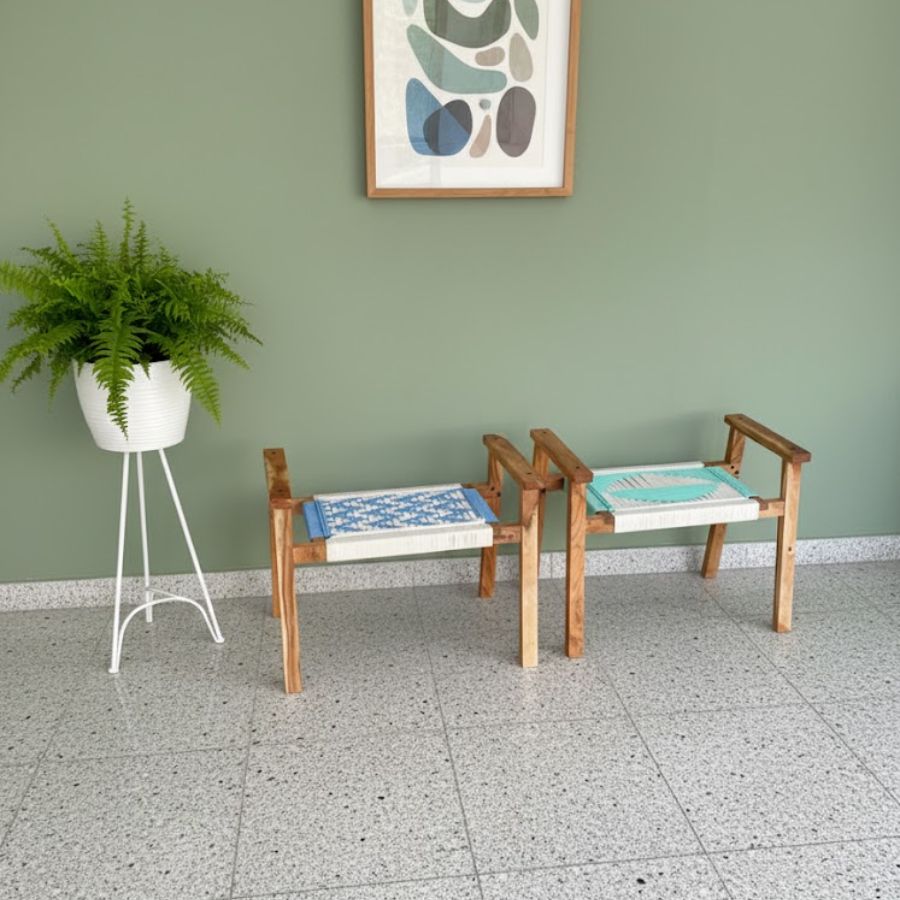 Set of two hand-rest woven stools