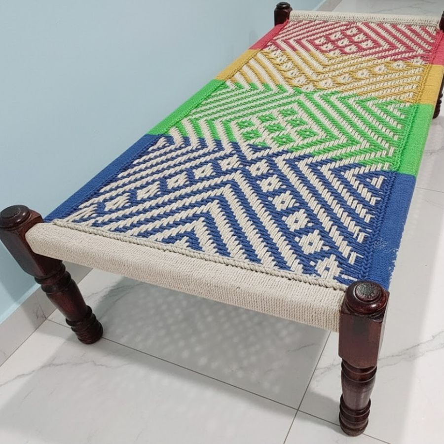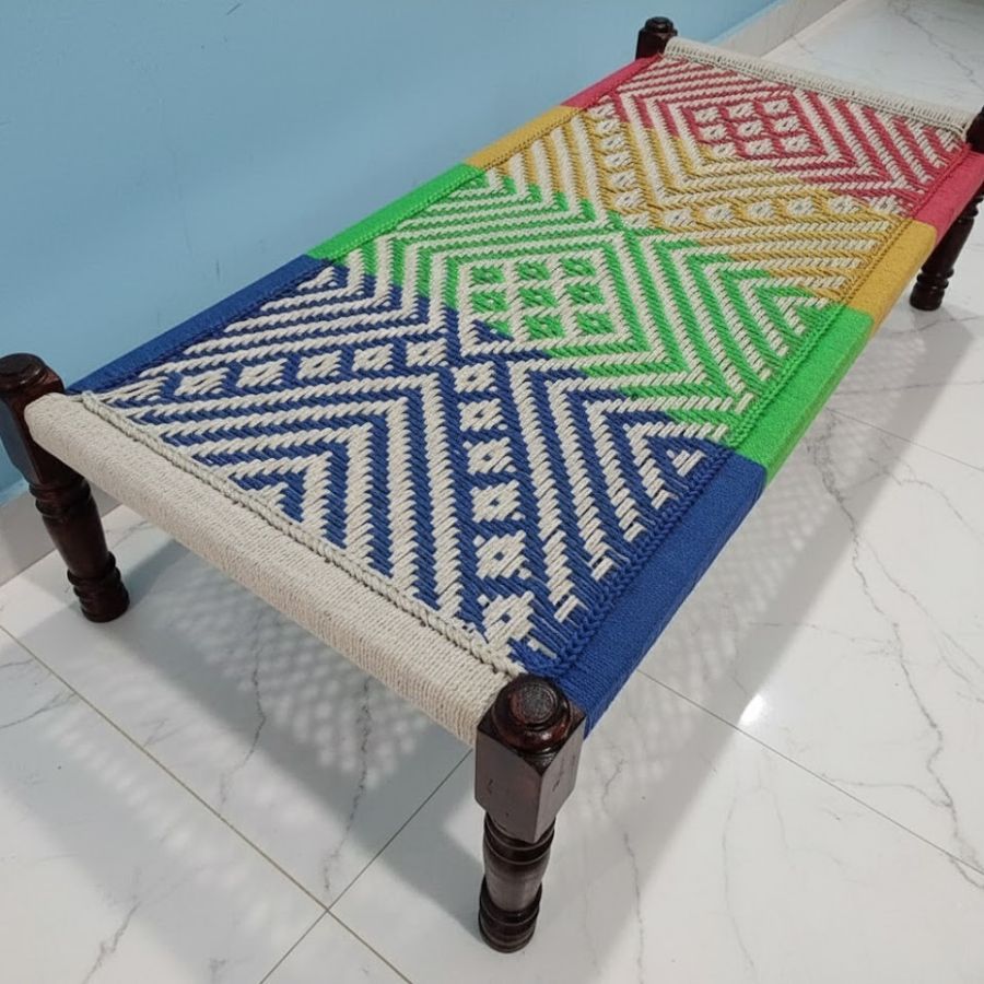 This Pistol Solid Sheesham Wood Handwoven Charpai/Khaat (Multicolor) is a vibrant, traditional Indian daybed featuring a robust solid wood frame and a skillfully handwoven cotton rope surface in multicolor geometric patterns. Designed for comfort, durability, and flair, this charpai/Khatiya is perfect for both indoor and outdoor settings—ideal for lounging, relaxing, or as an eye-catching accent piece. The colorful, artisanal weaving not only brings heritage craftsmanship into your home but also offers a lightweight, easily movable seating or bedding solution that blends tradition with modern utility.