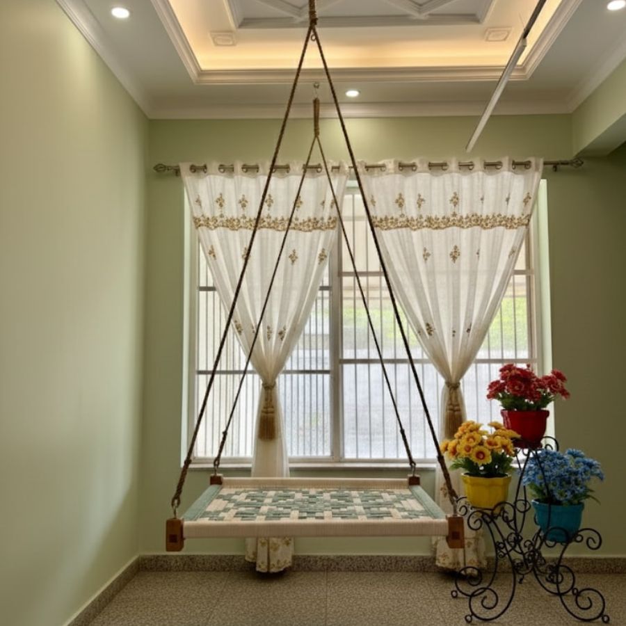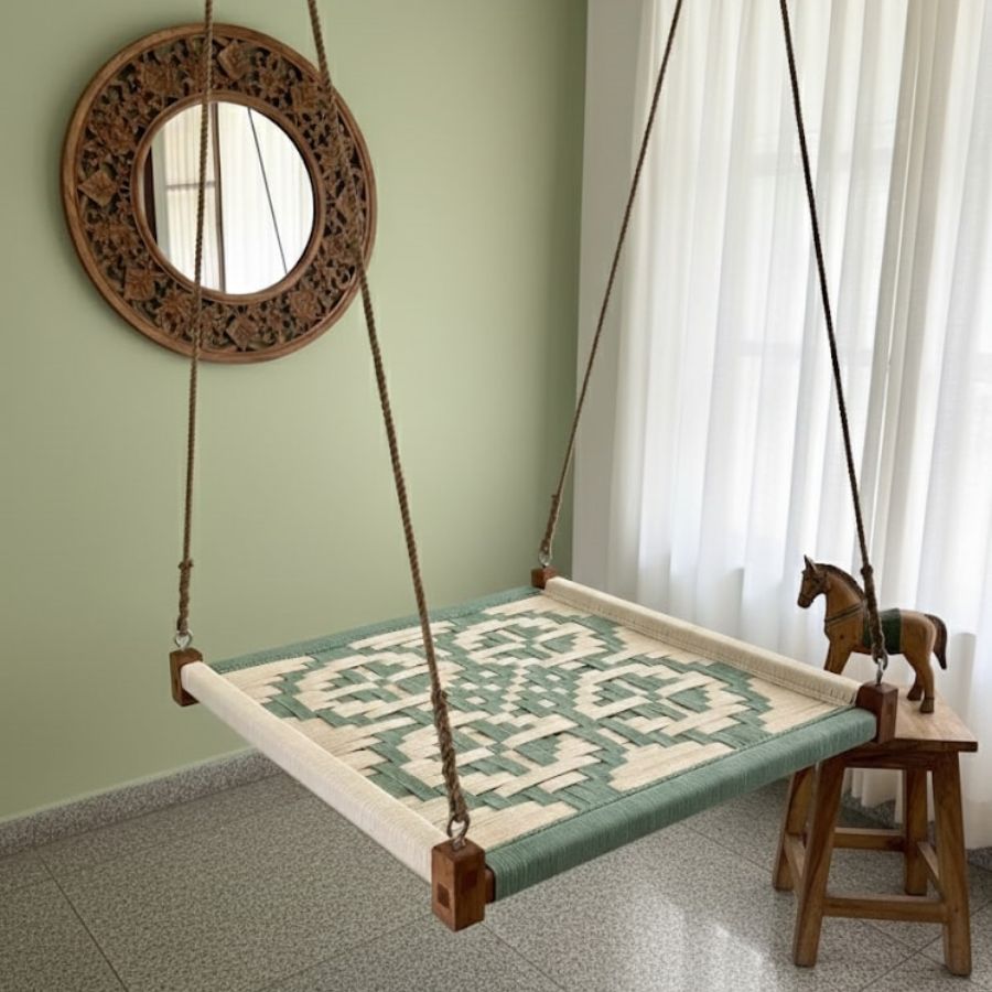 Furnshine – Rad Hand Woven Charpai Swing (White & Green Color)