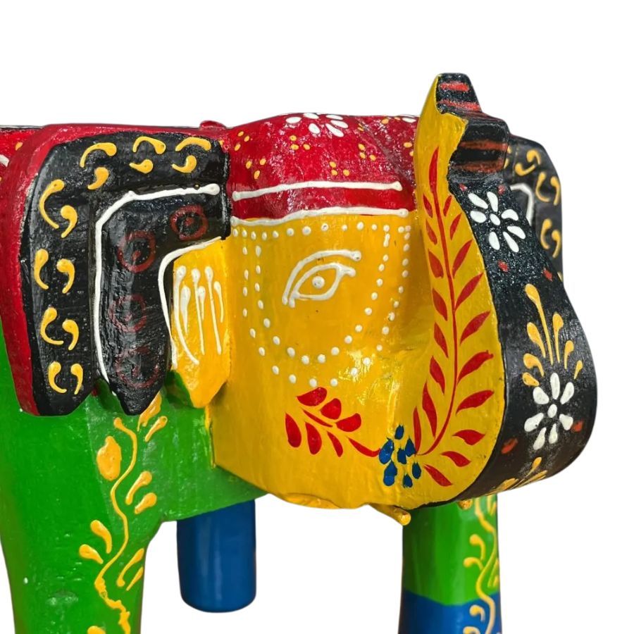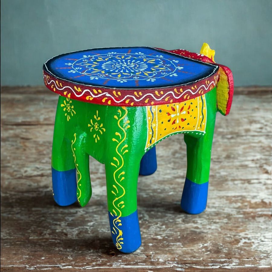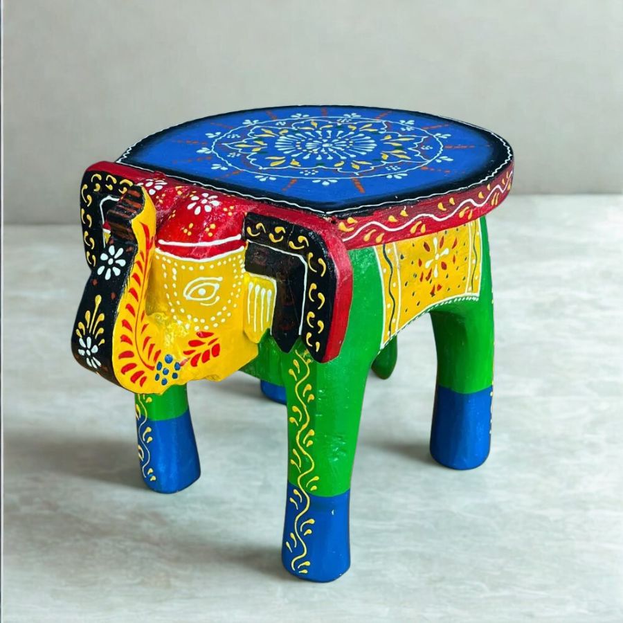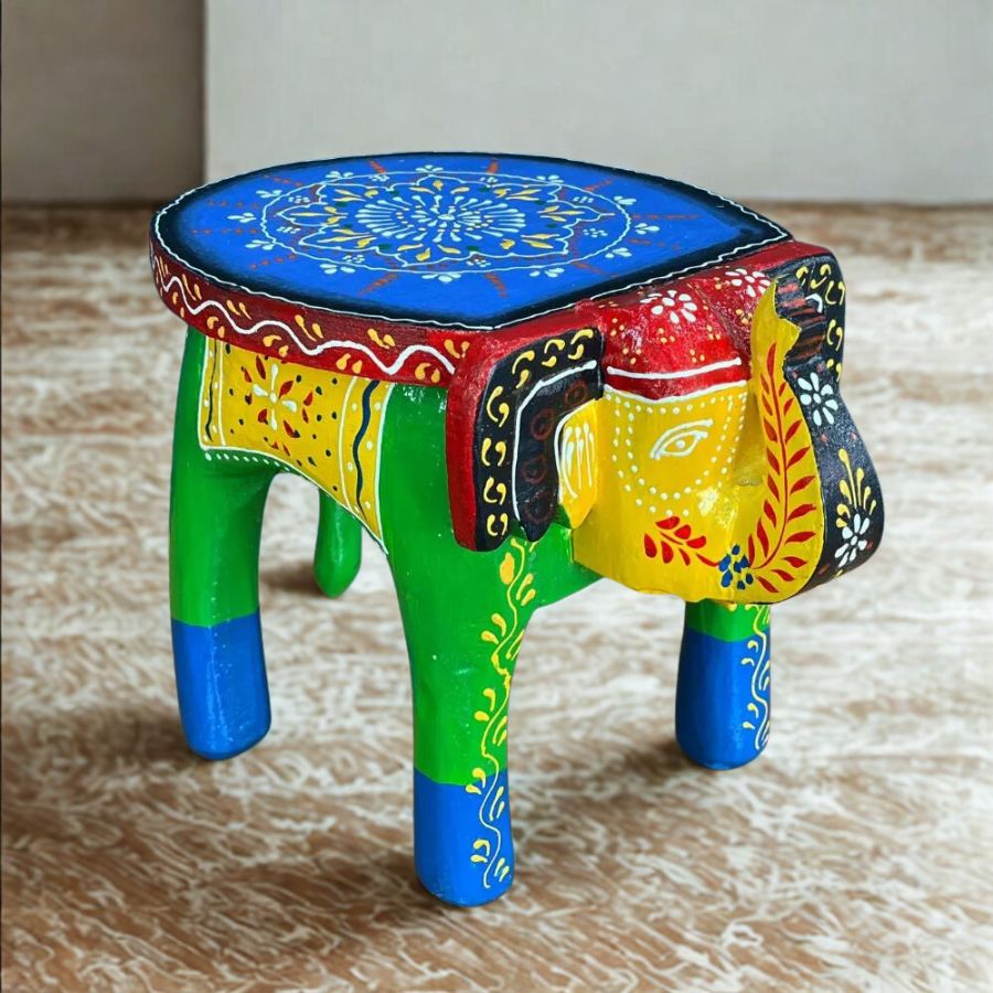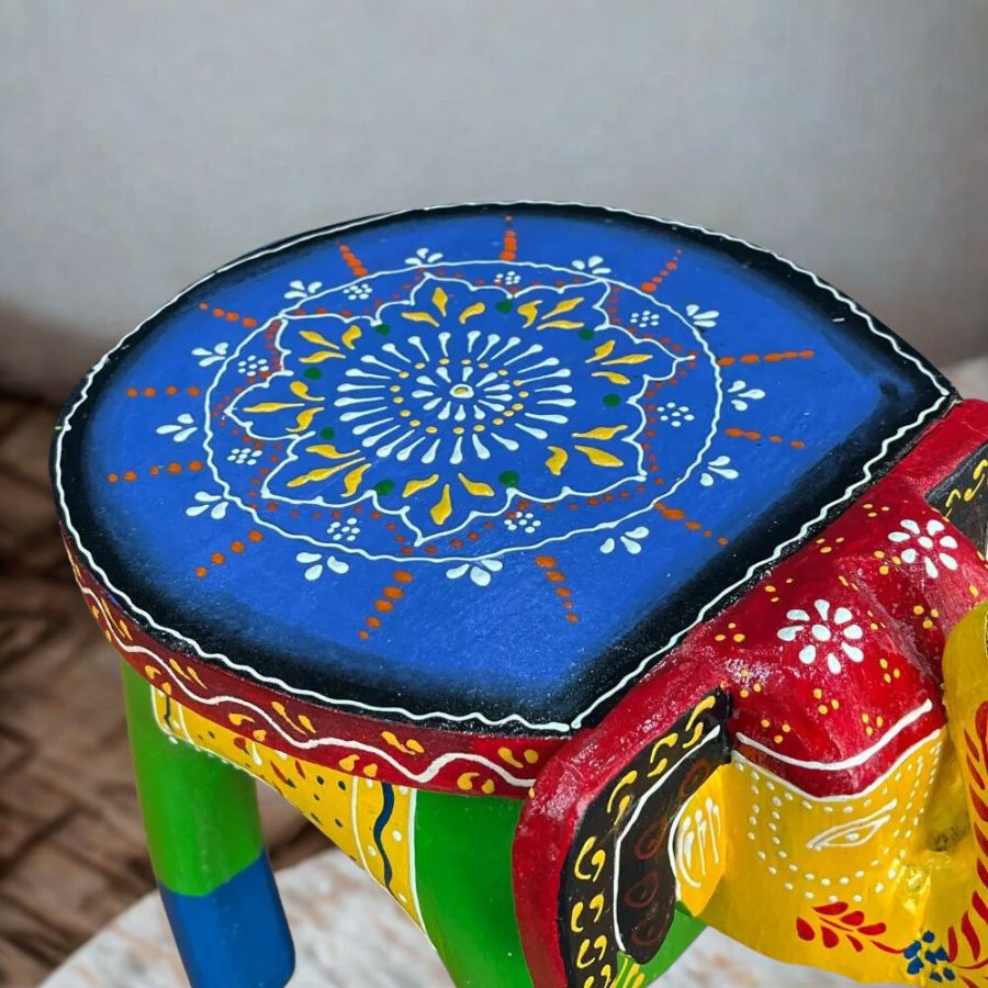 - Authentic Rajasthani hand-painted wooden elephant stool