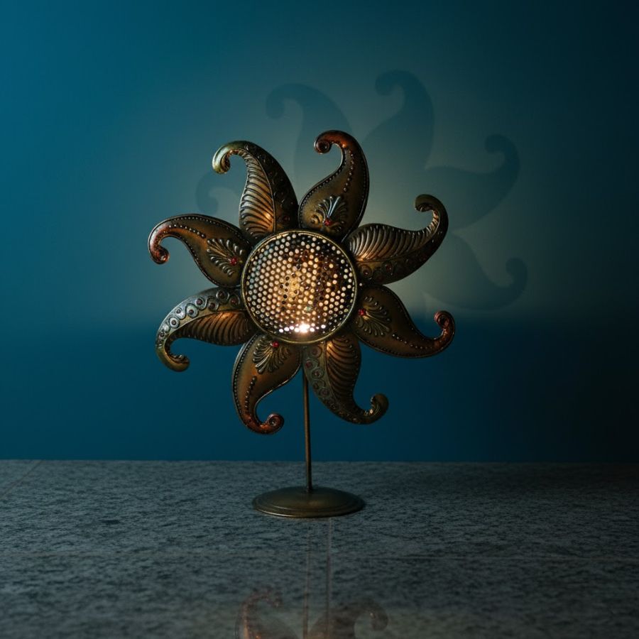 Furnshine – Ridley Handcrafted Artistic Sun Tabletop Decor – Multicolor Metal Cutwork Indian Home Accent Showpiece