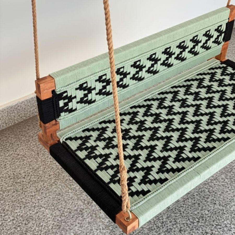 Furnshine – Ringo Light Green & Black Woven Pattern Swing with Backrest