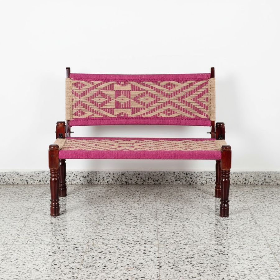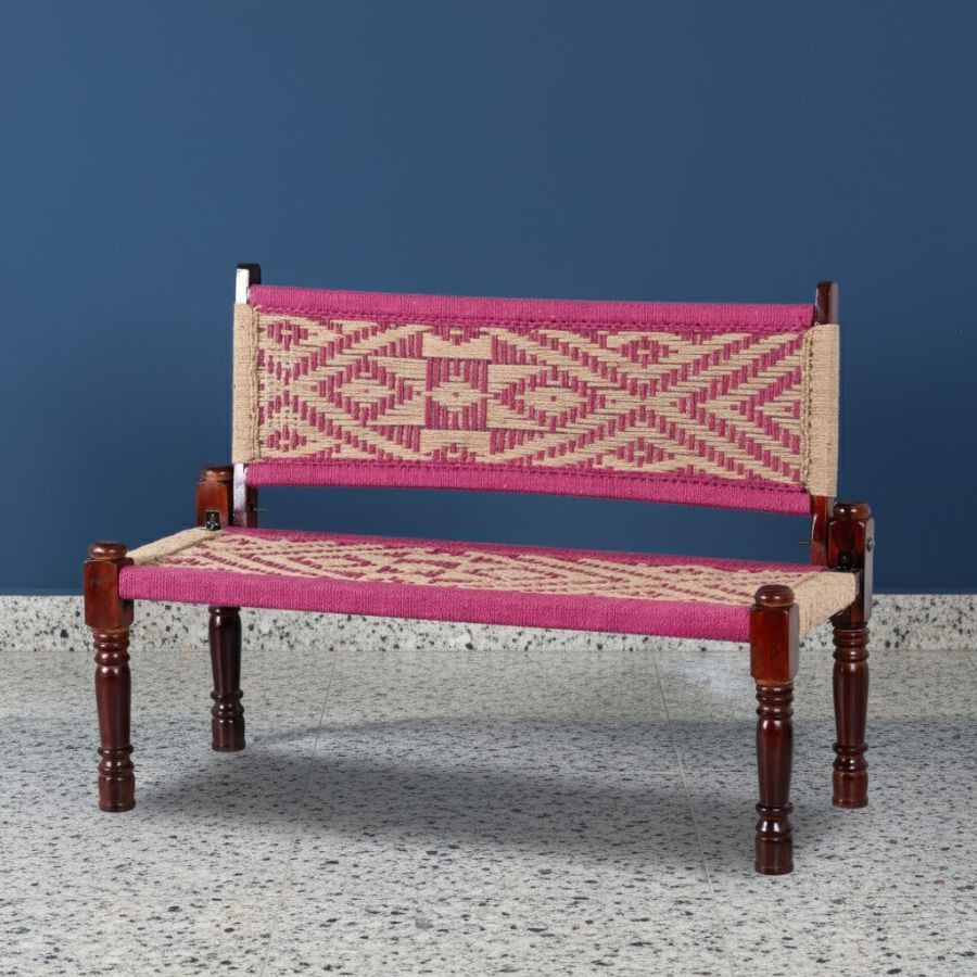 Furnshine – Seeley Sheesham Wood Woven Backrest Bench (Pink & Jute Beige)