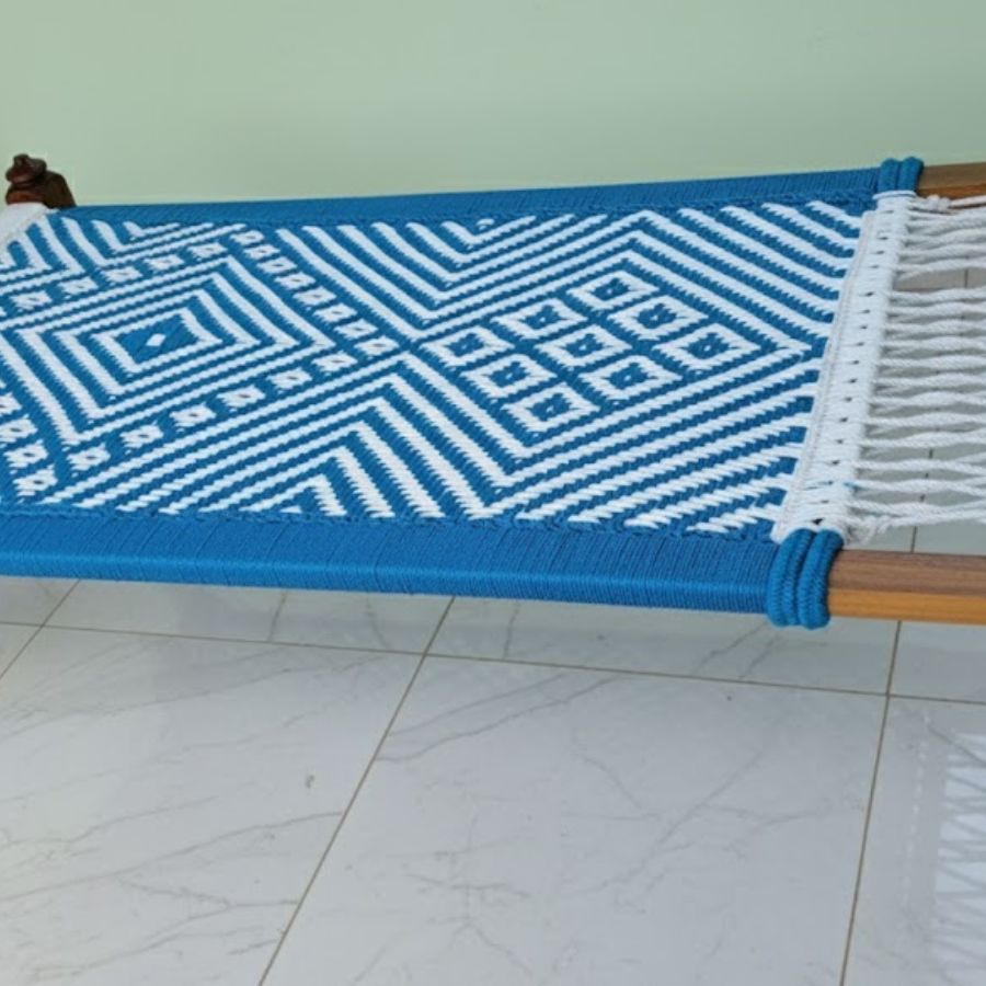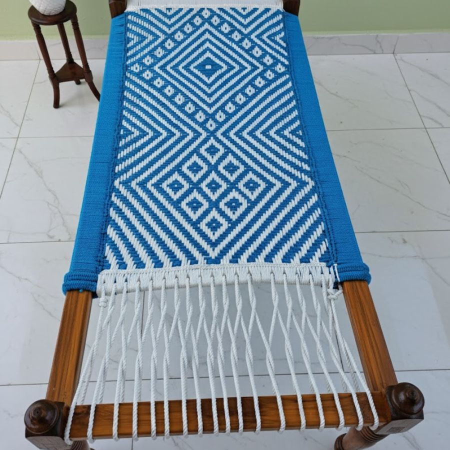 This Selby Solid Sheesham Wood Handwoven Charpai/Khatiya (Sky Blue & White) is crafted from high-quality Sheesham wood and durable cotton rope, offering a traditional yet stylish addition to any home. Its handwoven design provides both comfort and support, making it ideal for indoor and outdoor use. With a vibrant blue pattern and sturdy wooden legs, the charpai boasts a weight capacity of up to 400 kg, ensuring reliability and style for guests or everyday relaxation. The breathable weave and ergonomic build help relieve back discomfort, blending heritage craftsmanship with modern utility.