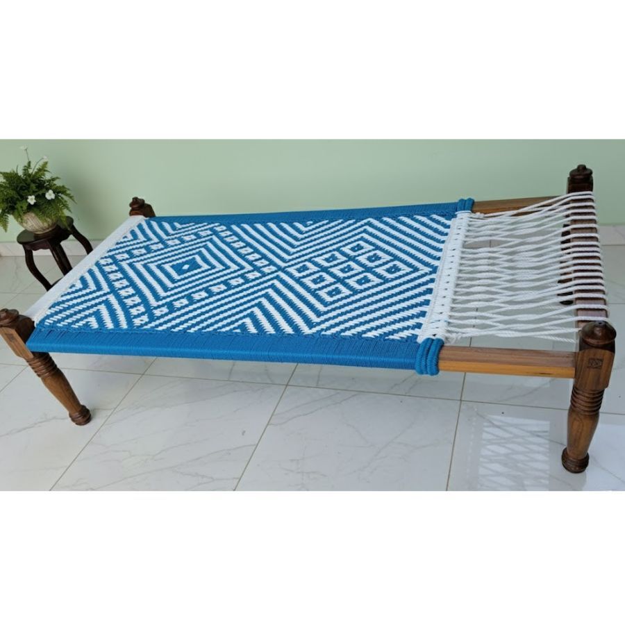Furnshine – Selby Solid Sheesham Wood Handwoven Charpai/Khatiya (Sky Blue & White)