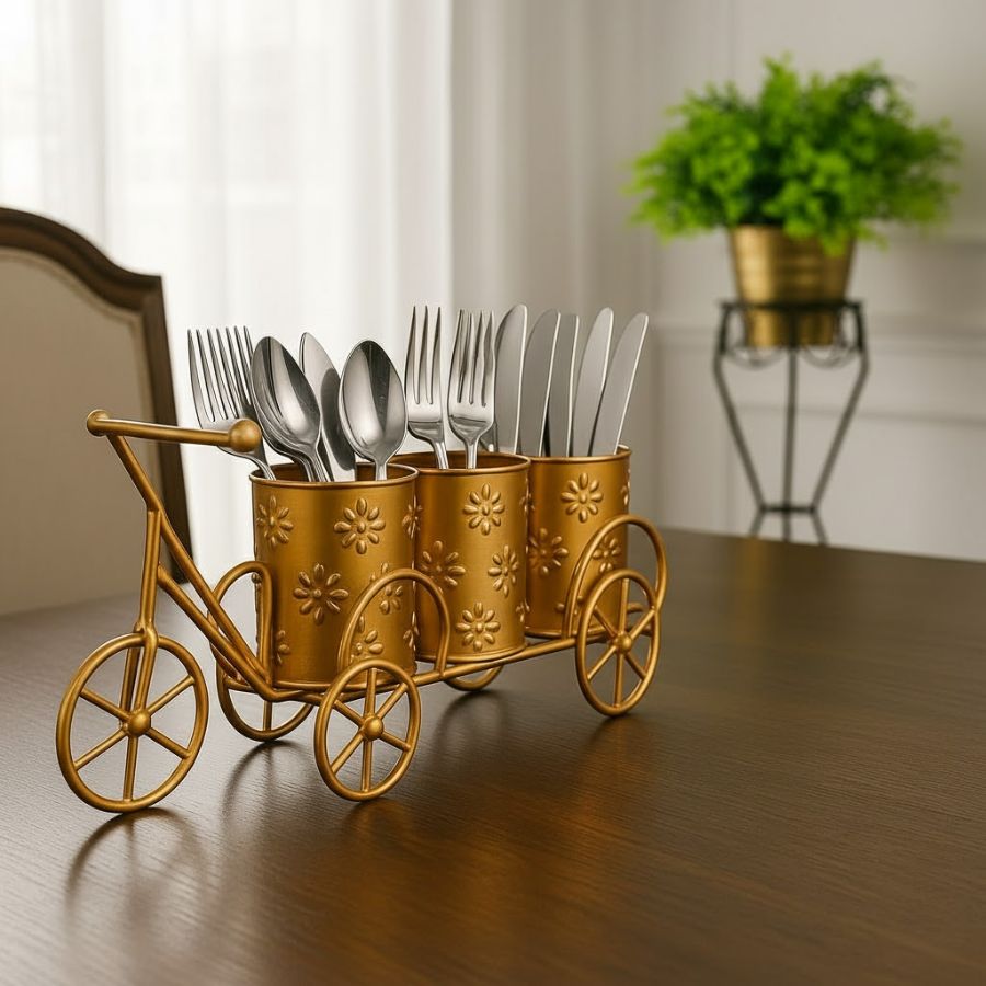 - This designer cutlery stand for dining table is a versatile accessory that is sure to catch the eye when displayed. Its aesthetic appearance is further enhanced by its handcrafted value, and it adds a premium feel to any style of home decor.