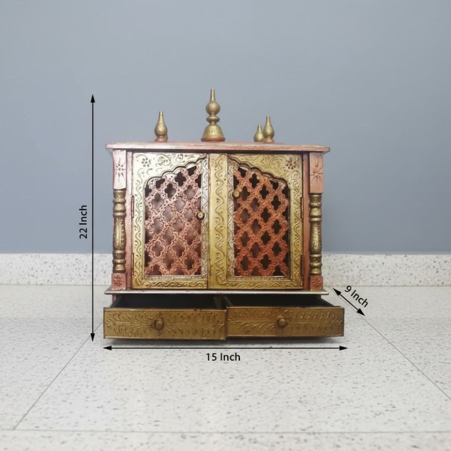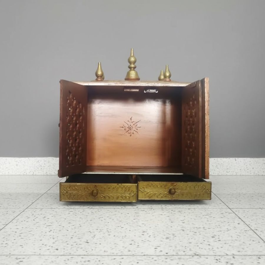 - Built-in pull-out drawer to store pooja samagri and small accessories.