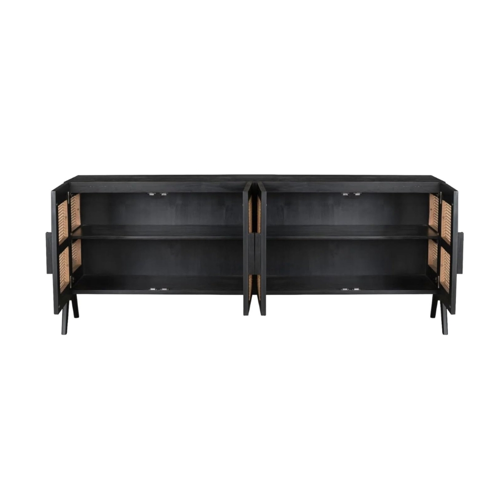 Introduce elegance and functionality to your living space with our premium storage unit. Designed to offer ample space for stowing essentials while enhancing your decor, this versatile piece provides an organized and stylish solution for any room. Perfect for books, decor, media devices, or everyday items, it seamlessly complements various interior aesthetics, making it suitable for both modern and traditional settings. Meticulously crafted from Teak Wood and Rattan, the black finish and natural texture add a sophisticated charm to your space. Built to meet industry standards for safety and durability, this unit is made to last.