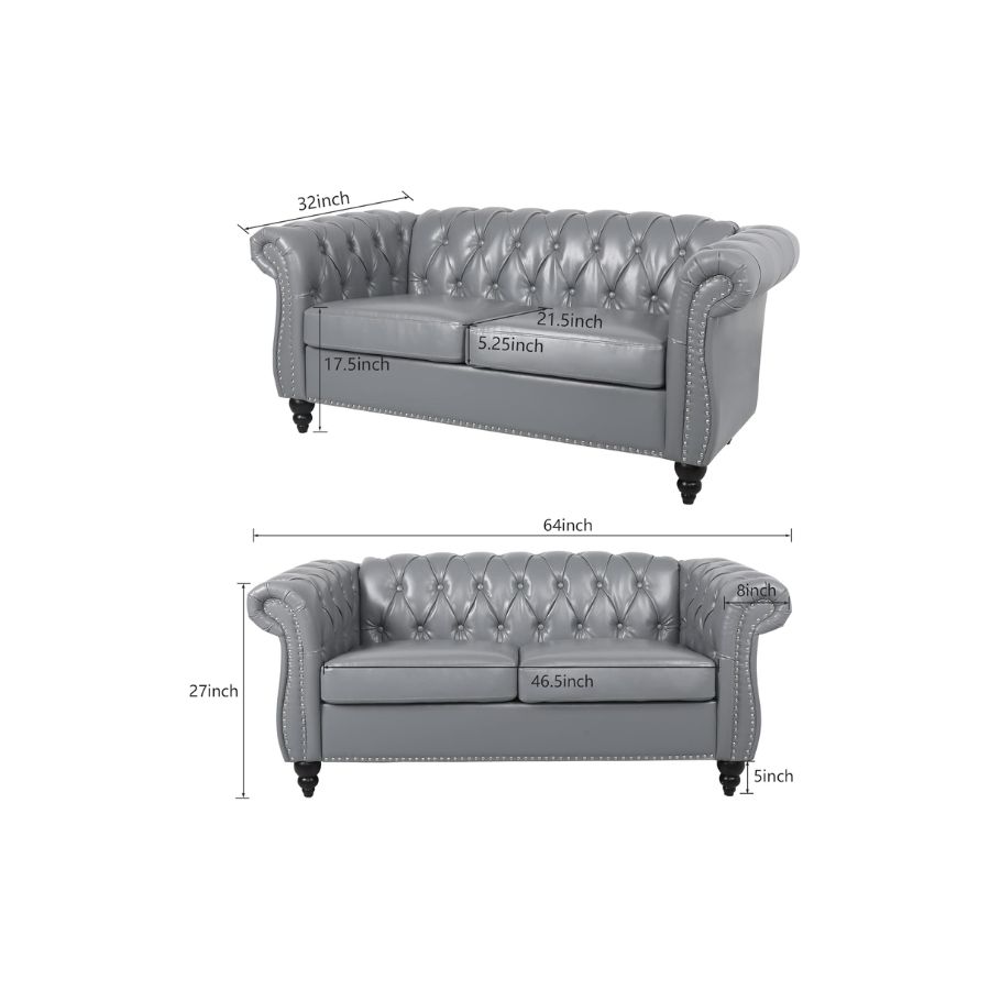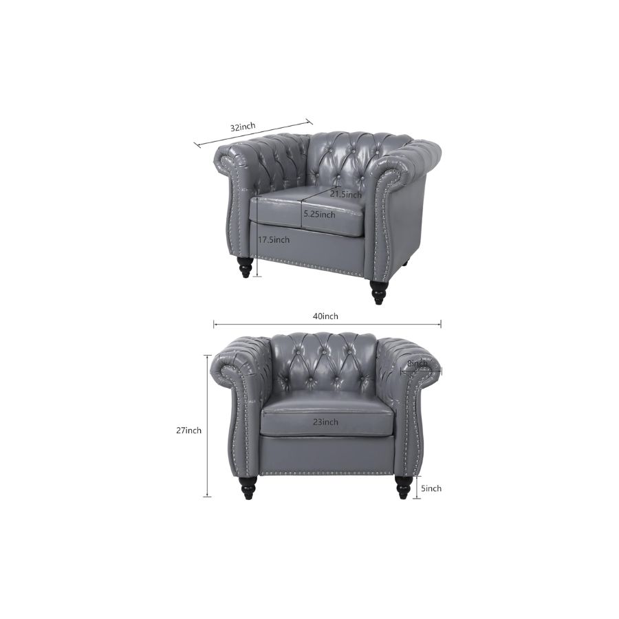 Furnshine – Vere 3 Pieces Faux Leather Chesterfield Sofa with Loveseat & Couch Chair