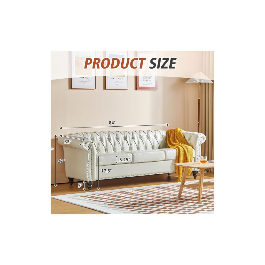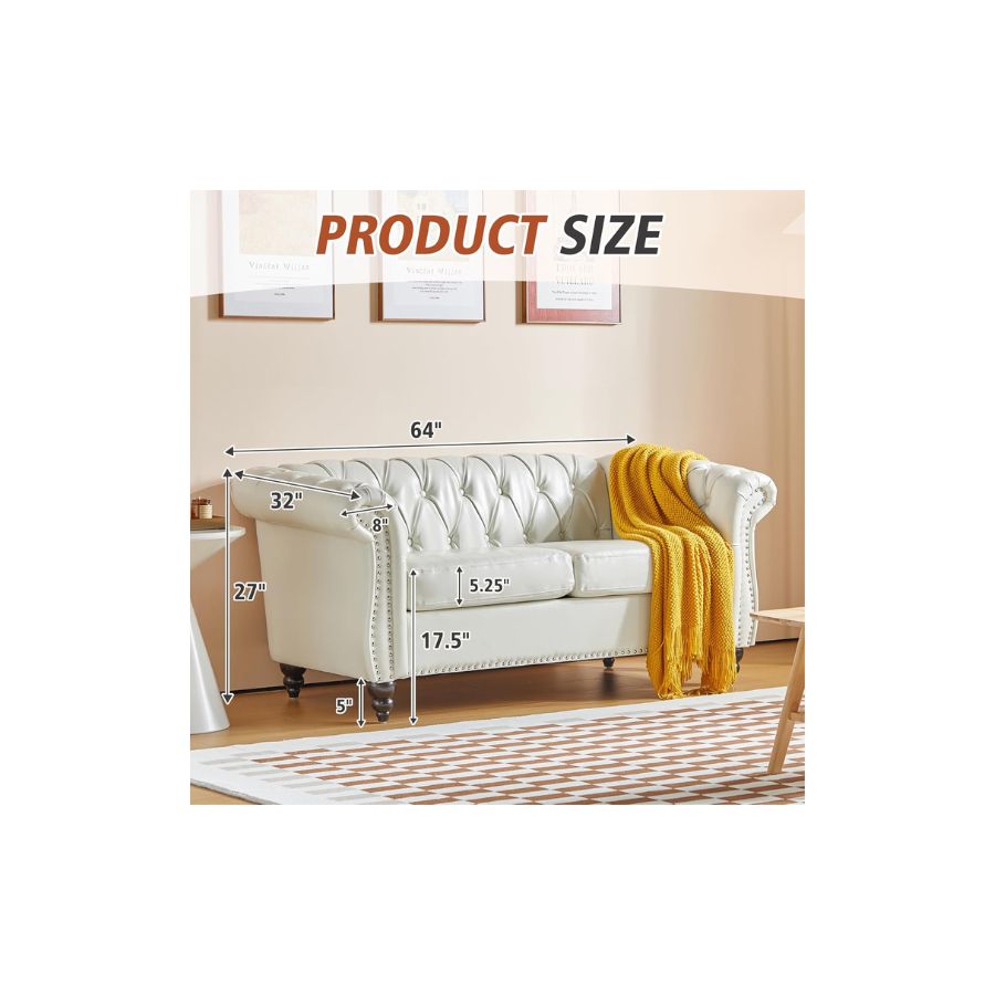 - Chesterfield Style – Designed with the traditional Chesterfield style of the sofa, the couch brings an atmosphere of luxury with tufted deep button, nailhead accents, scrolled arms.