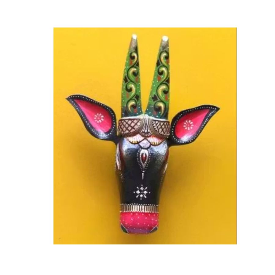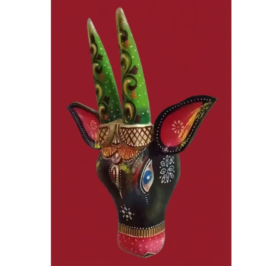 Transform your walls with this vibrant wooden bull head, a striking fusion of folk art and modern decor inspired by the artisans of Jodhpur, Rajasthan. Handcrafted from sturdy wood and meticulously hand-painted, it showcases bold black, pink and green tones with intricate ethnic motifs that instantly draw attention. Measuring approximately 13 inches in length, 13 inches in height and 3.5 inches in breadth, this piece is ideal for entryways, living rooms, cafes or boutiques seeking a unique focal point. The lightweight structure and back hook make it easy to mount on any wall, while the spiritual bull symbolism brings an aura of strength and positivity to your home. Gift it for housewarmings, festive occasions or to any decor lover who appreciates authentic Indian handicraft.