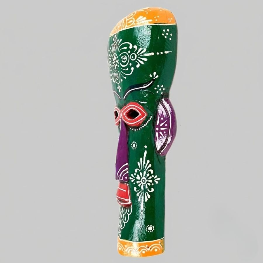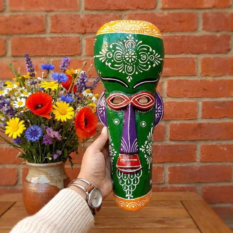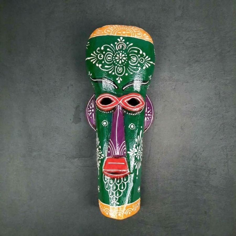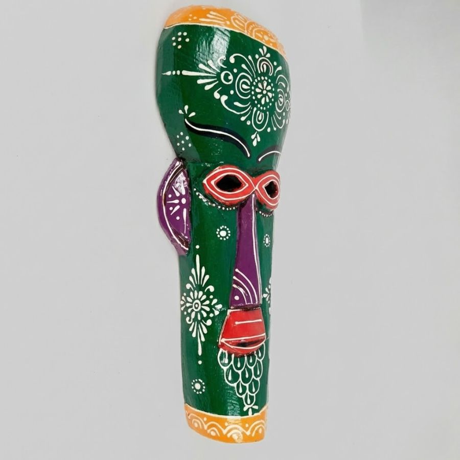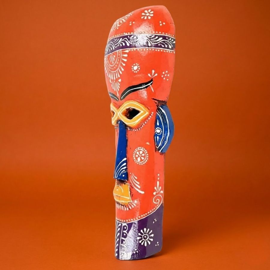 Add a bold cultural statement to your interiors with this Handcrafted Tribal Wall Mask Décor. Inspired by traditional folk art, this striking mask features vibrant shades of orange, blue, yellow, and maroon, beautifully hand-painted with intricate motifs and patterns. The elongated face and expressive details give it a powerful presence, making it a perfect centerpiece for living rooms, hallways, offices, cafés, or creative spaces. Crafted by skilled artisans using durable material, this decorative mask reflects authentic craftsmanship and artistic heritage. Its lightweight yet sturdy construction allows for easy wall mounting without damaging surfaces. Whether you want to enhance ethnic décor, bohemian themes, or contemporary interiors with a touch of tradition, this tribal mask blends effortlessly with different styles. It also makes a thoughtful gift for art lovers, housewarmings, festivals, or special occasions. Each piece is uniquely handcrafted, ensuring no two masks are exactly alike.