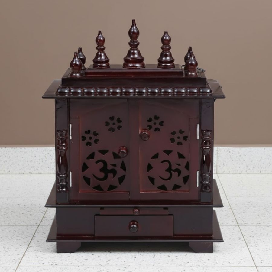 - Front storage drawer for organizing pooja accessories and small essentials.