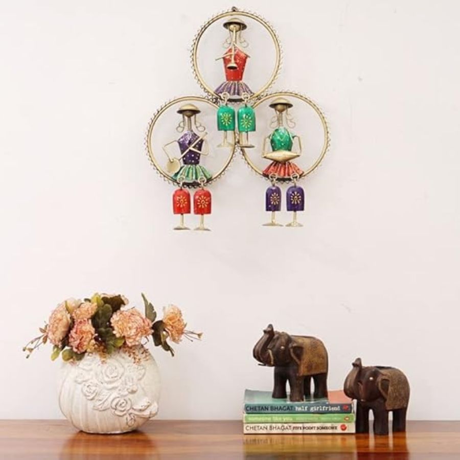 Enhance your walls with artistic elegance using this Furnshine Wally Abstract Musician 3 Cap Lady in Ring Metal Wall Art | Handcrafted Multicolor Iron Wall Hanging Sculpture for Home, Living Room, Café & Restaurant Decor. Crafted from durable metal and finished with vibrant hand-painted colors, this unique wall hanging features abstract human figures arranged in a stylish circular composition. Its contemporary yet ethnic design makes it a perfect décor accent for living rooms, restaurants, cafés, offices, or creative spaces. The fine detailing and balanced color palette add depth and character to plain walls while reflecting modern artistic expression. Easy to mount and long-lasting, this abstract metal wall art effortlessly elevates interior aesthetics and makes a thoughtful gift for art lovers and décor enthusiasts.