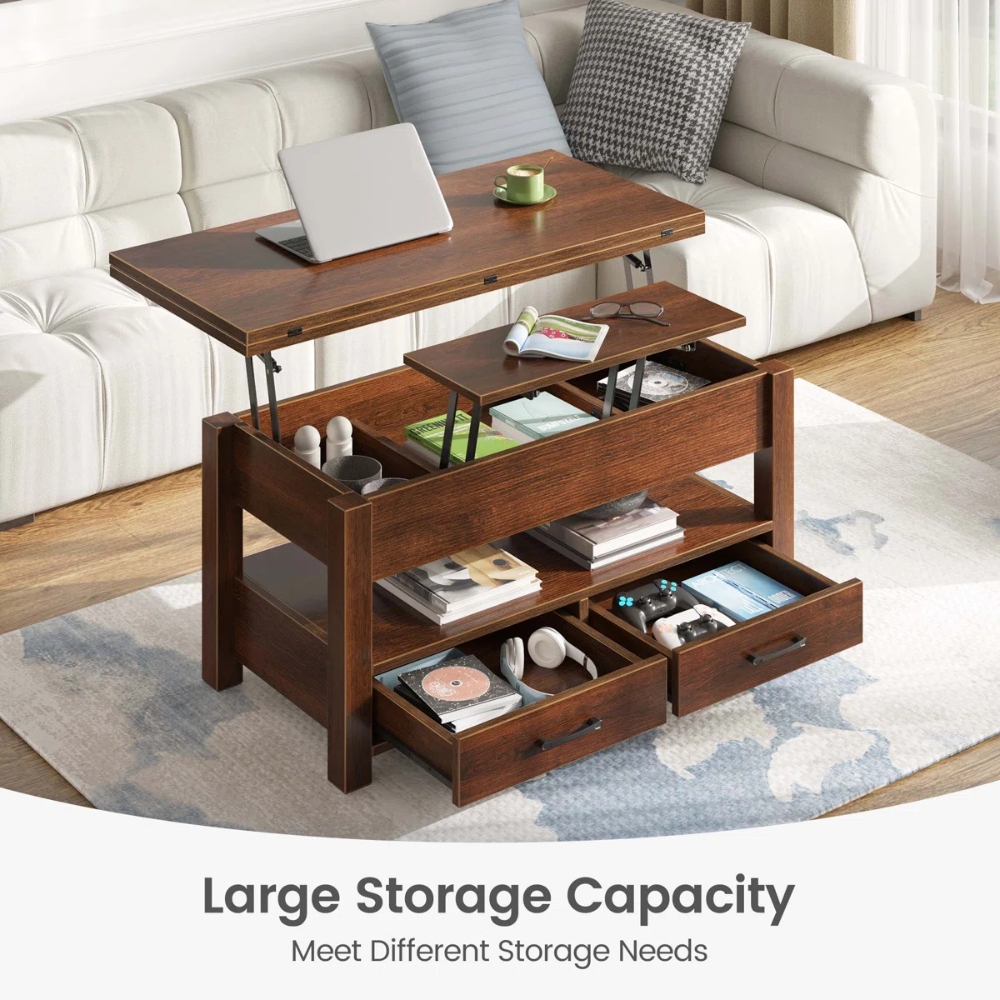 - Multi-functional Coffee Table: The lift tabletop enables you to easily adjust the table to the perfect height for activities such as using a laptop, writing, or enjoying a meal while seated on the couch.